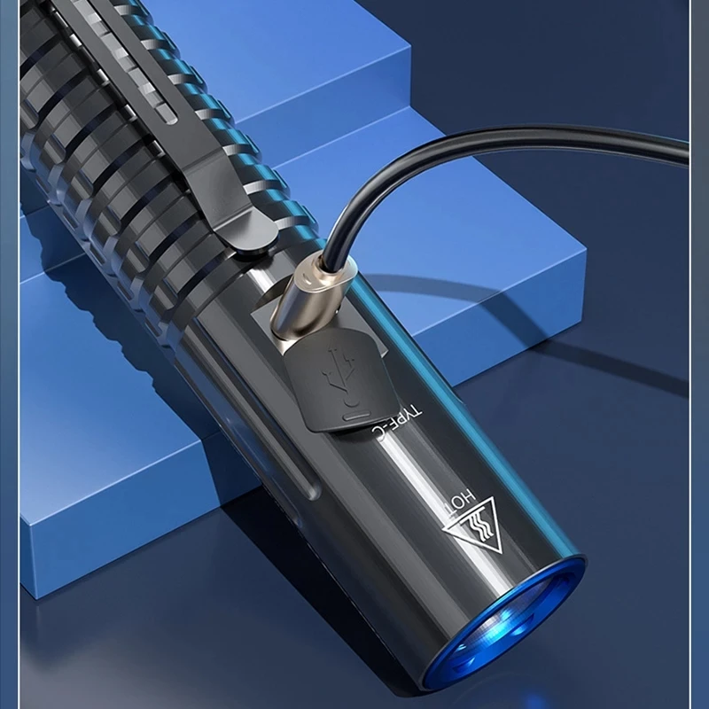 La lampe de poche CORKILaffiliations Batterie aste 5000mAh 21700 EDC est une lampe compacte et amusante. Elle dispose d’un flux lumineux maximal de 2000 lumens et d’une portée de 500m. La batterie a une capacité de 5000mAh et le port de charge est de type-C. La lampe est fabriquée en alliage d’aluminium, ce qui la rend résistante aux chocs.