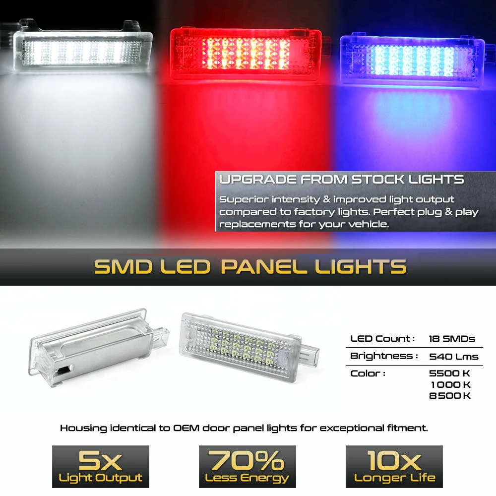 2 pièces (une paire) de 18 LED SMD haute puissance de courtoisie, puits de pied, boîte à gants, sous