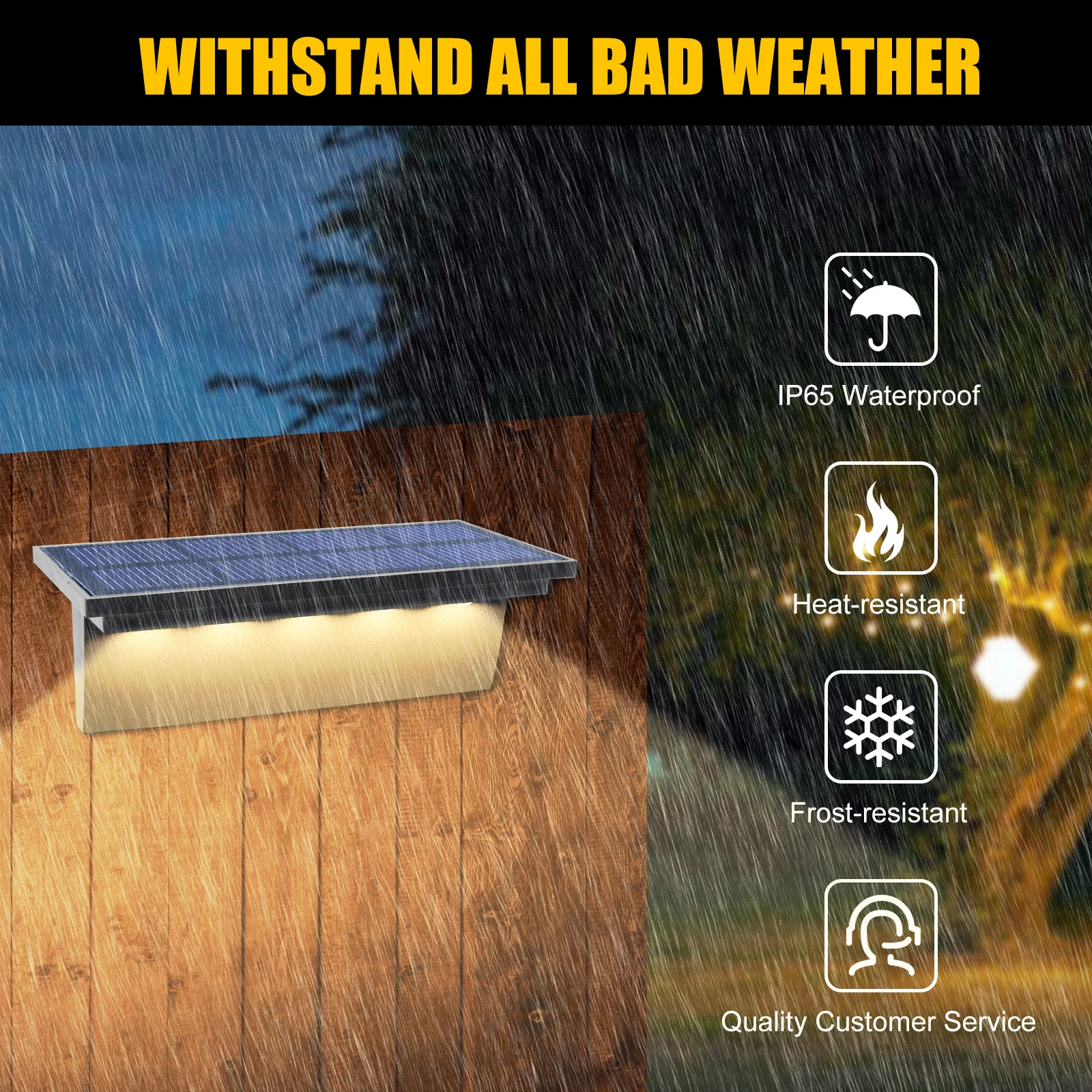 La lampe solaire d’extérieur à LED est un produit super lumineux qui offre un éclairage de décor d’escalier antivol. Sa conception de lentille de lampe de marche assure une excellente diffusion de la lumière, tandis que sa certification IP65 garantit une protection contre les intempéries.