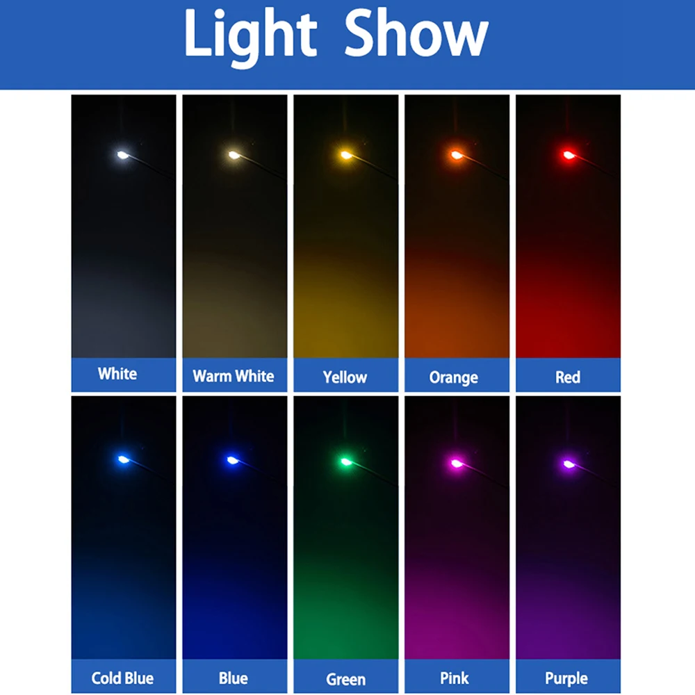 - Couleur: bleu, jaune, rouge, blanc, blanc chaud, vert, orange, bleu froid, rose, violet