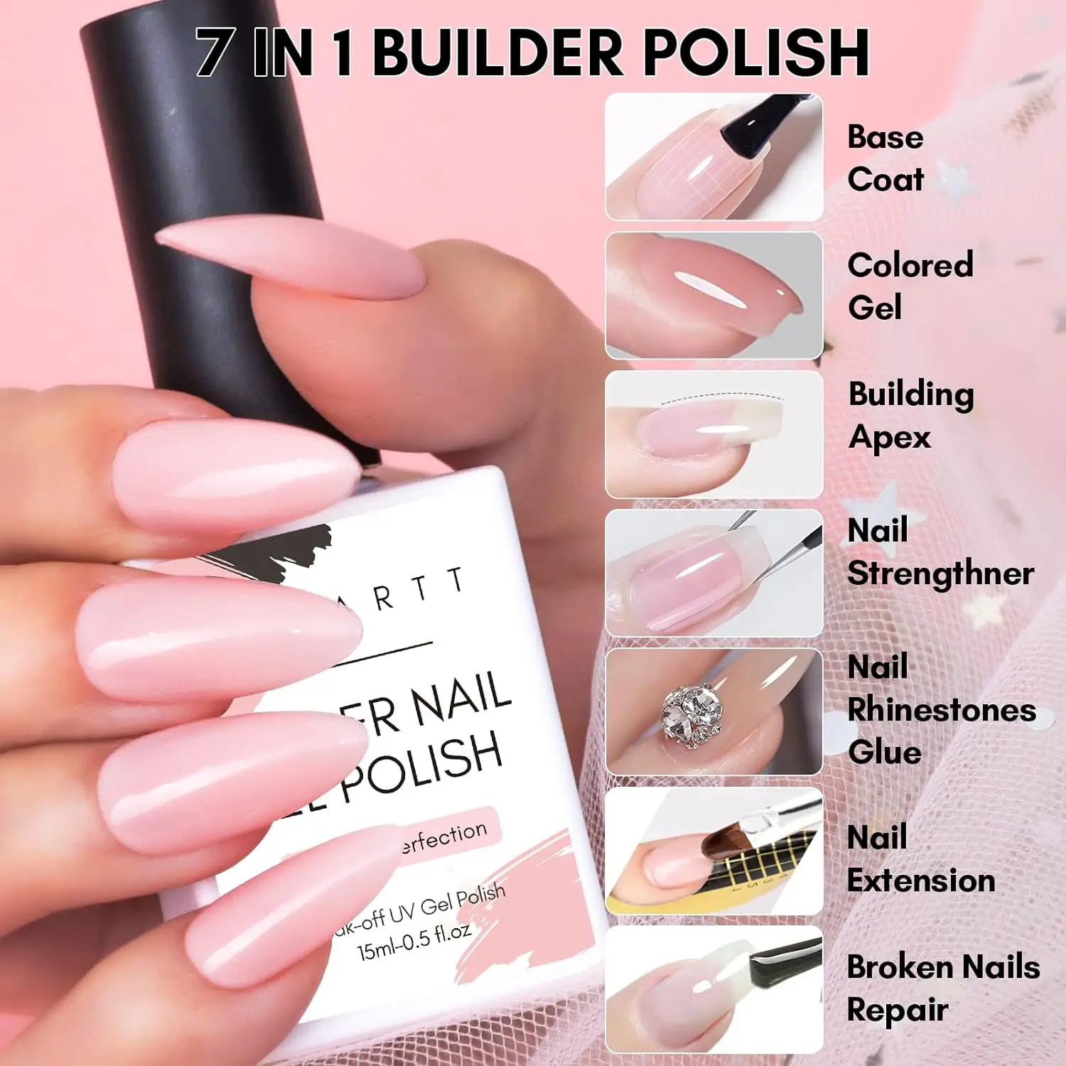 | Gel Builder 7 en 1 multifonctionnel | Couleur: blanc laiteux et 6 nuances de rose nude |