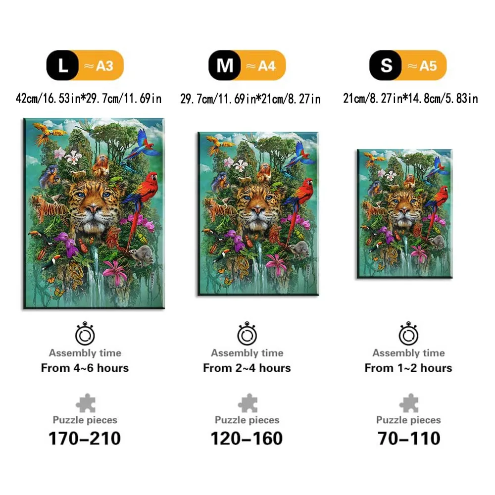 La taille A4 signifie le puzzle découpé dans un bois A4, pas la taille du puzzle, veuillez le noter avant de commander.