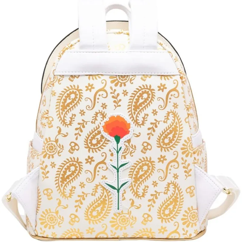 - Ce sac comporte une applique Ernesto de la Cruz à l’avant, une applique rose à l’arrière, un nœud en satin brillant et des détails en feuille d’or. Avec ses multiples compartiments de rangement et ses bretelles réglables, c’est le sac parfait pour « saisir votre moment ».