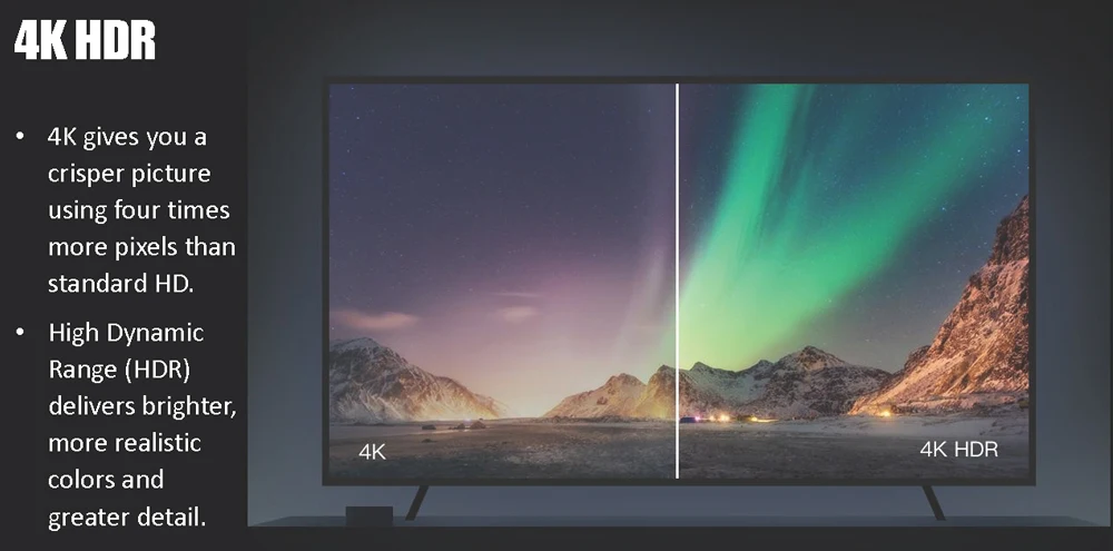 - 4K vous offre une image plus nette en utilisant quatre fois plus de pixels que la HD standard.