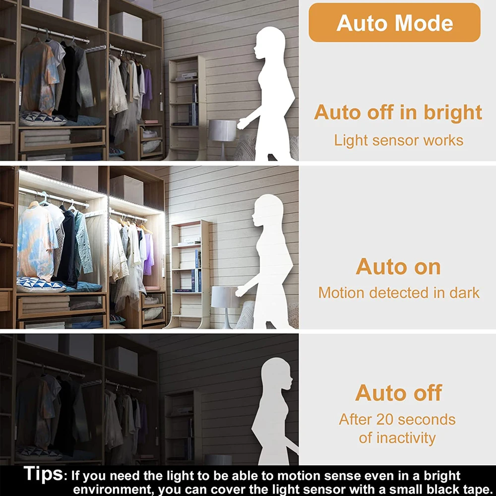 Le détecteur de mouvement intégré à la bande lumineuse permet de détecter les mouvements dans son champ de vision. Lorsqu’un mouvement est détecté, la bande lumineuse s’allume automatiquement.