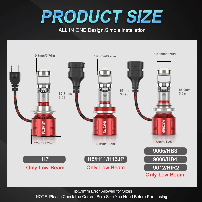 - H7, H8, H11, 9005, HB3, 9006, HB4, 9012, Hir2