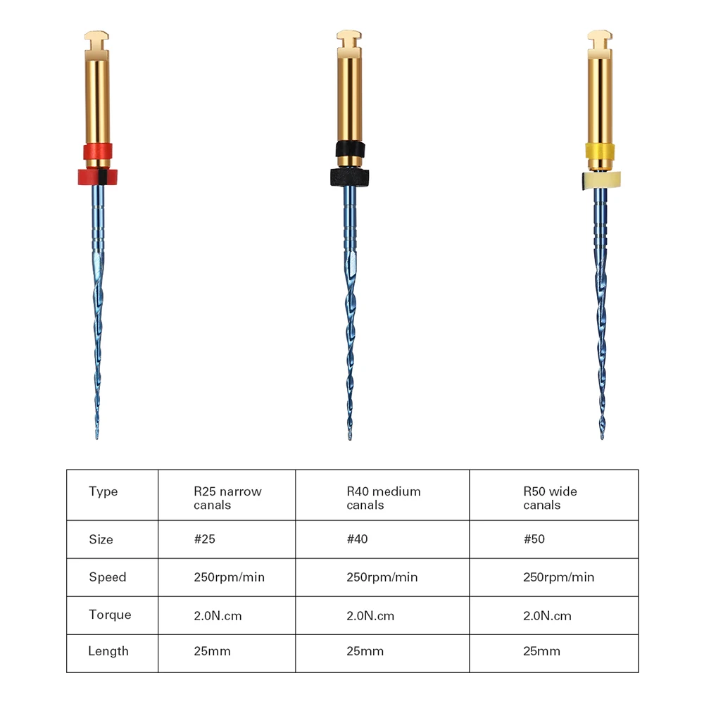 Remarque: Lisser le canal radiculaire, l’EDTA est recommandé pendant le traitement. Gardez la 1/3 de la pointe de la racine entièrement lubrifiée.