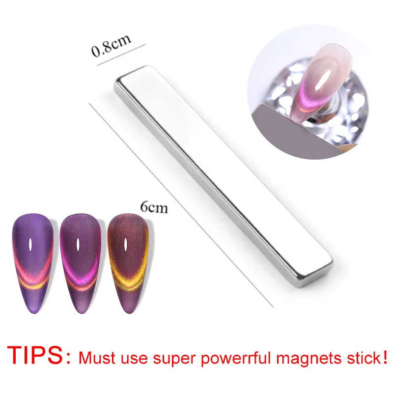 3. Placer les aimants super puissants diagonalement collés sur l’ongle (3-5mm de distance) et maintenir pendant 5-8s, durcir avec une lampe LED/UV pendant 30-60s.