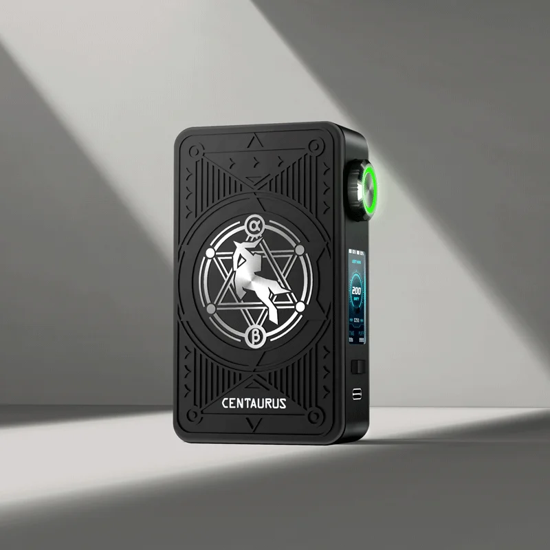 Le Centaurus M200 Mod est alimenté par deux batteries externes 18650 avec 200W max et charge rapide Type-C. Conçu avec l’interférence innovante du cadran 3 en 1 qui comprend une roue rotative à 360°, un bouton de tir central et une indication du niveau de batterie par LED. vous pouvez facilement contrôler le mod d’une seule main en déplacement. L’interrupteur à bascule mécanique On/Off se combine avec le démarrage en 1 seconde peut non seulement vous apporter un vapotage rapide, mais éviter le déclenchement accidentel. Il dispose également d’un panneau facial modifiable à double face rapide et facile pour vous permettre de personnaliser n’importe quelle combinaison de couleurs ou de graver votre propre design. Fabriqué en alliage d’aluminium de qualité aéronautique sans couture de 26mm, il est léger à transporter et durable pour maintenir la robustesse. Centaurus M200 est compatible avec Centaurus Sub Ohm Tank. Il suffit de l’obtenir.