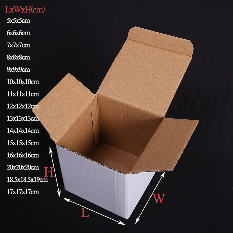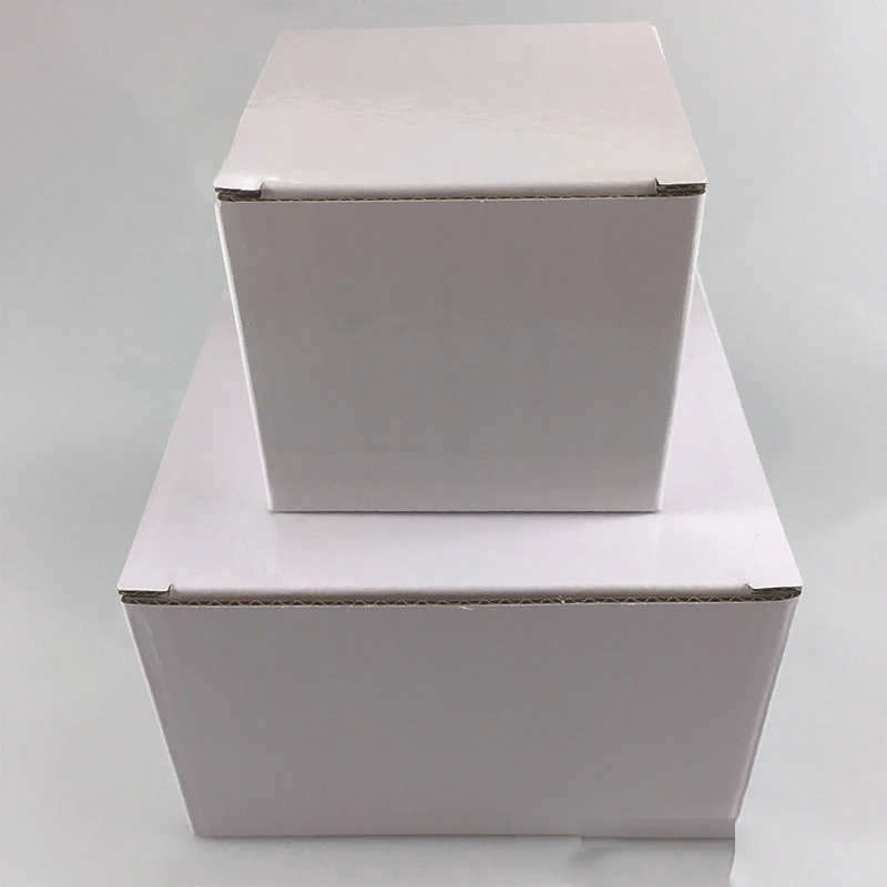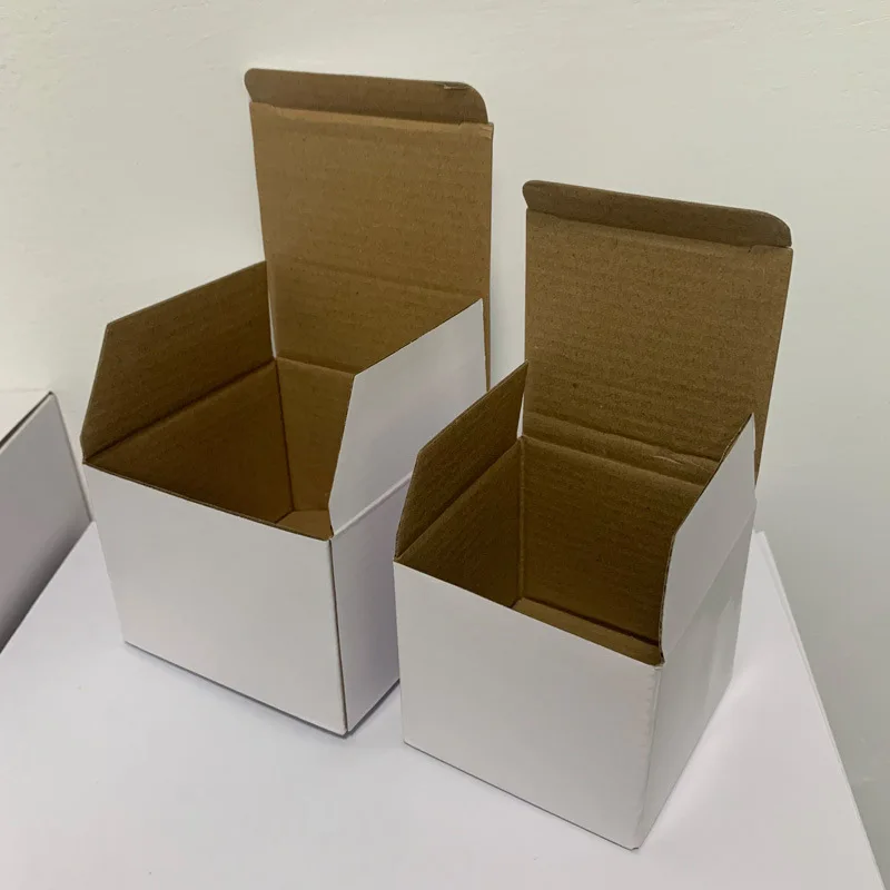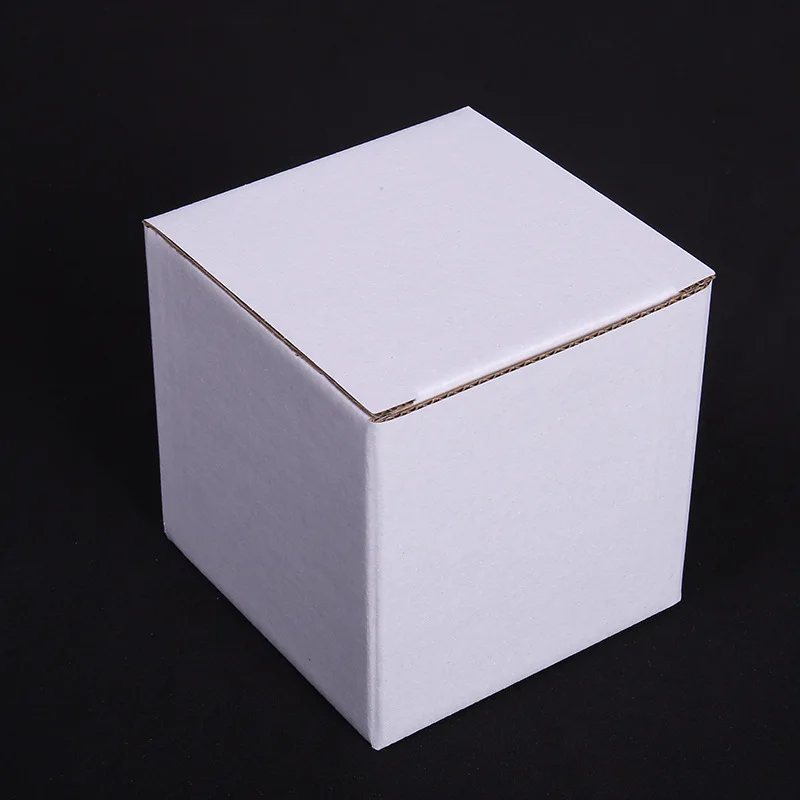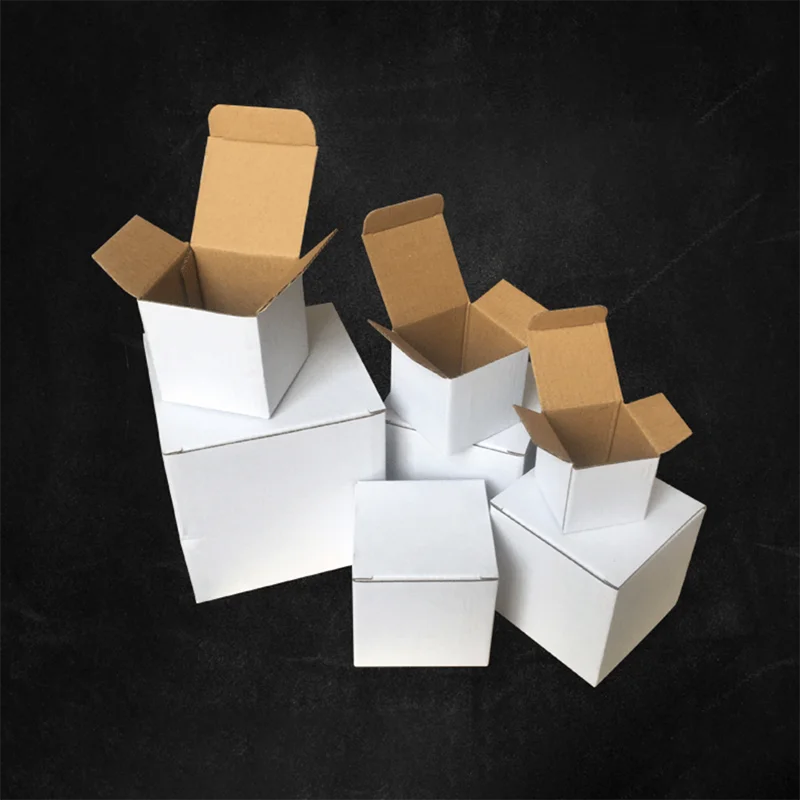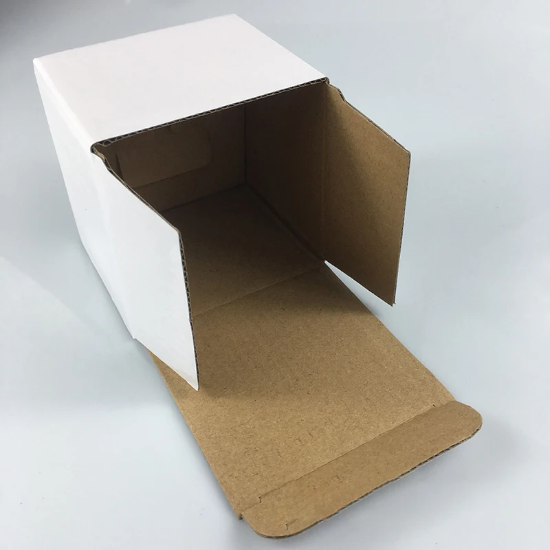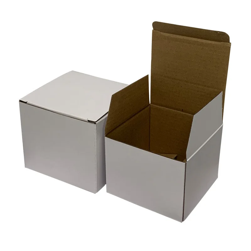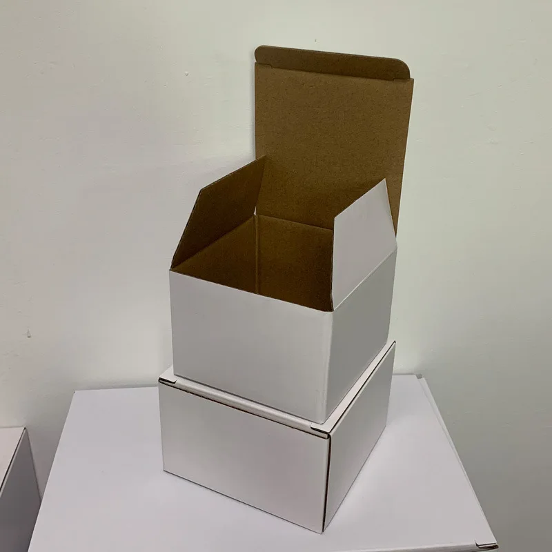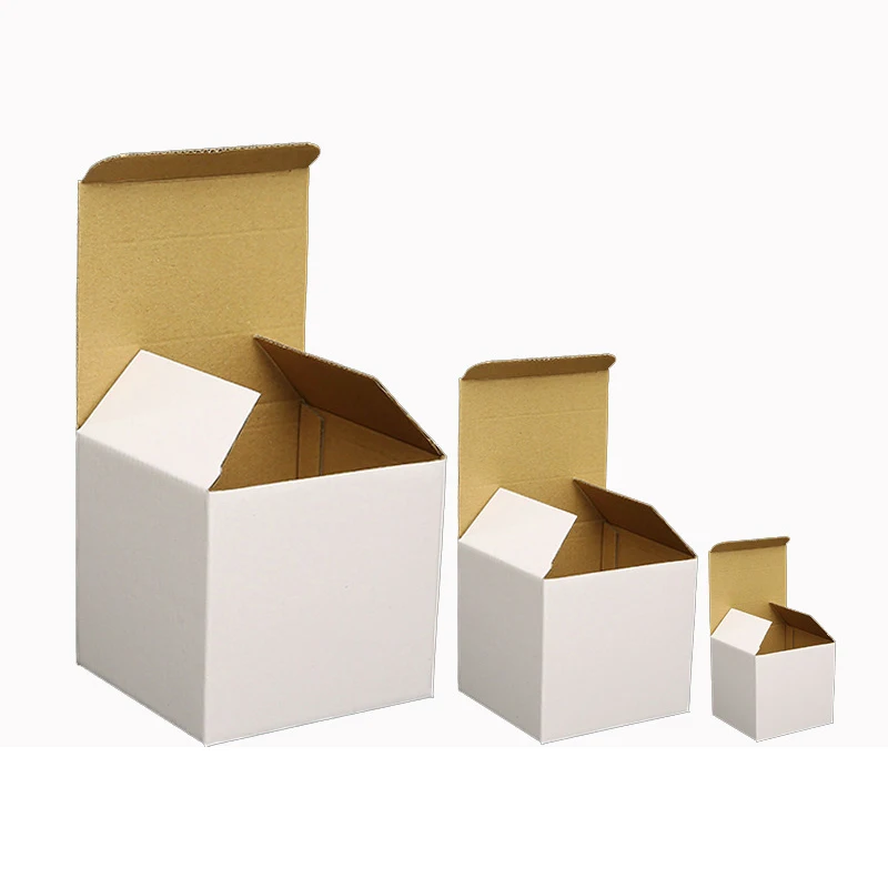 Boîte en carton blanc carrée avec intérieur en papier ondulé épais pour emballage postal express de cadeaux faits à la main.