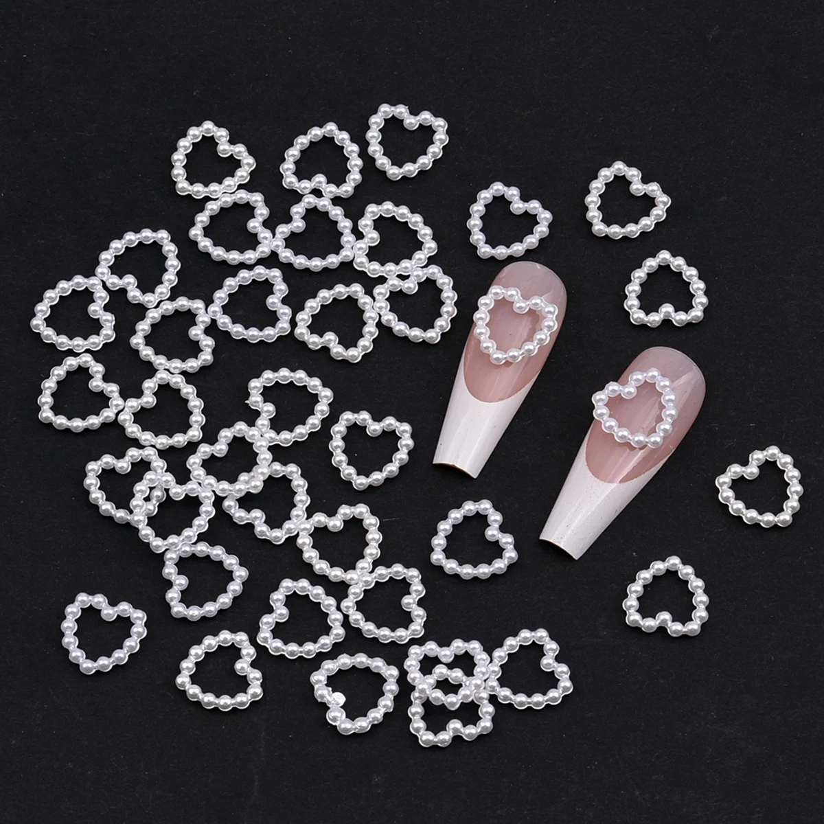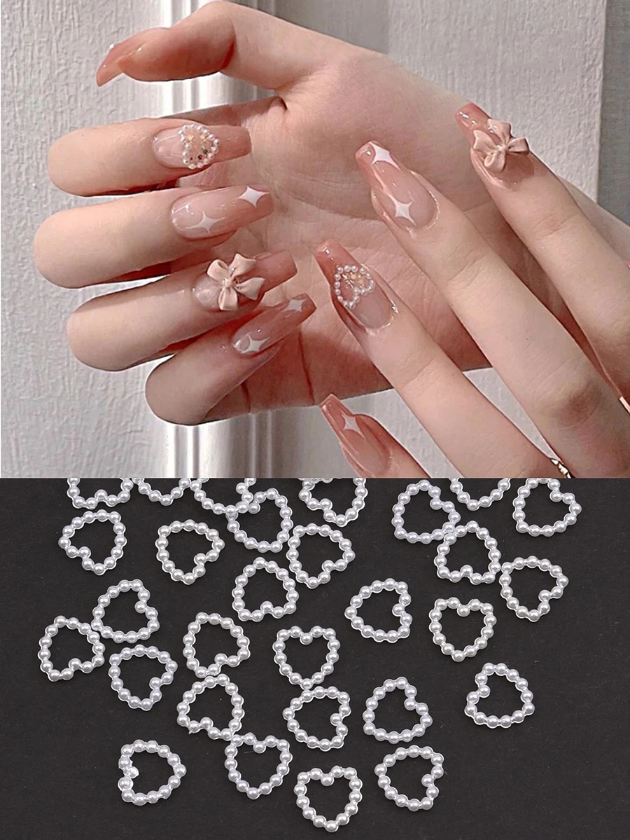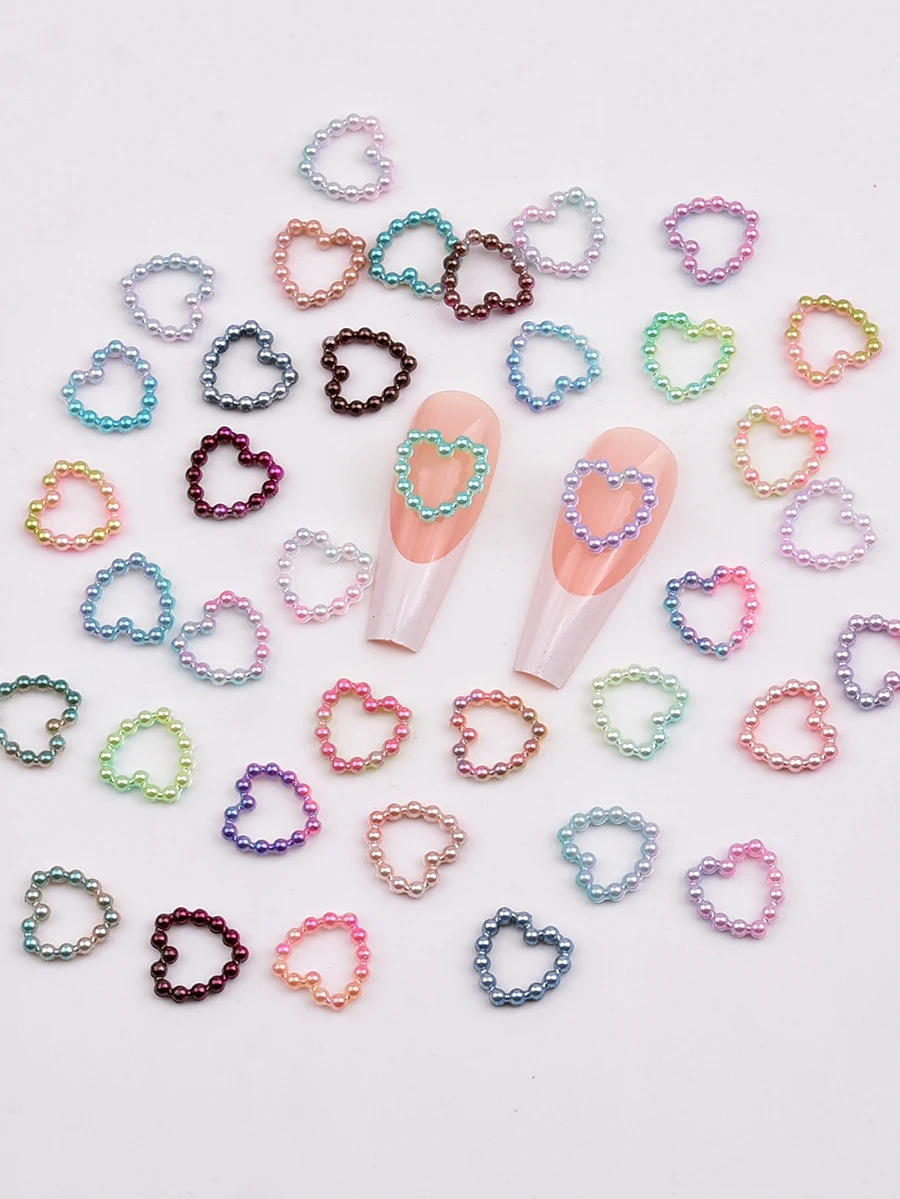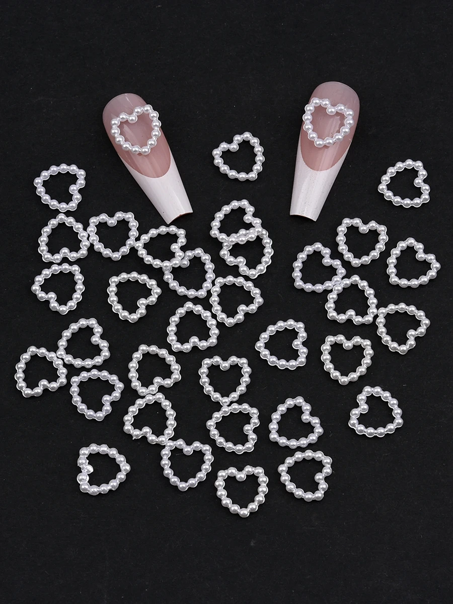 Charme d’art d’ongle 3D en forme de coeur de perle creuse, 100 pièces par paquet.
