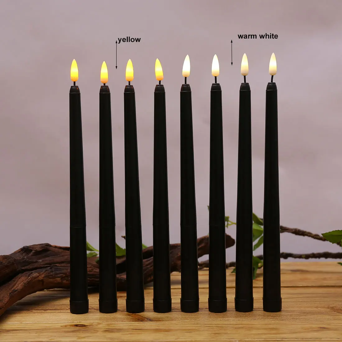 | Fonction à distance | Jaune scintillant / Blanc chaud scintillant | Blanc / Noir | Plastique | 12 bougies et une télécommande | 2.2 cm de diamètre, 28 cm de hauteur | 2 piles AAA par bougie |