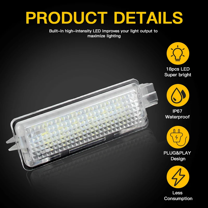 Ces lumières sont spécialement conçues pour les modèles de Ford Focus 2013 et ultérieurs, ainsi que pour le modèle Ford Kuga. Elles s’adaptent parfaitement à l’espace prévu dans le compartiment à bagages.