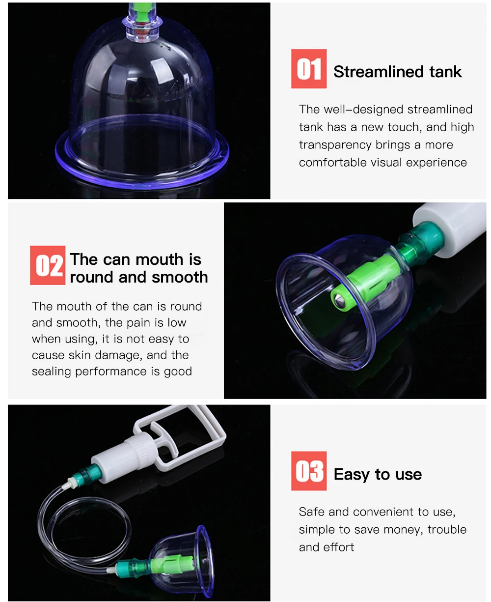 4. Il n’y a aucun risque de brûlure par rapport aux ventouses traditionnelles. Le feu et l’électricité ne sont pas nécessaires, sûr et fiable, opération facile.