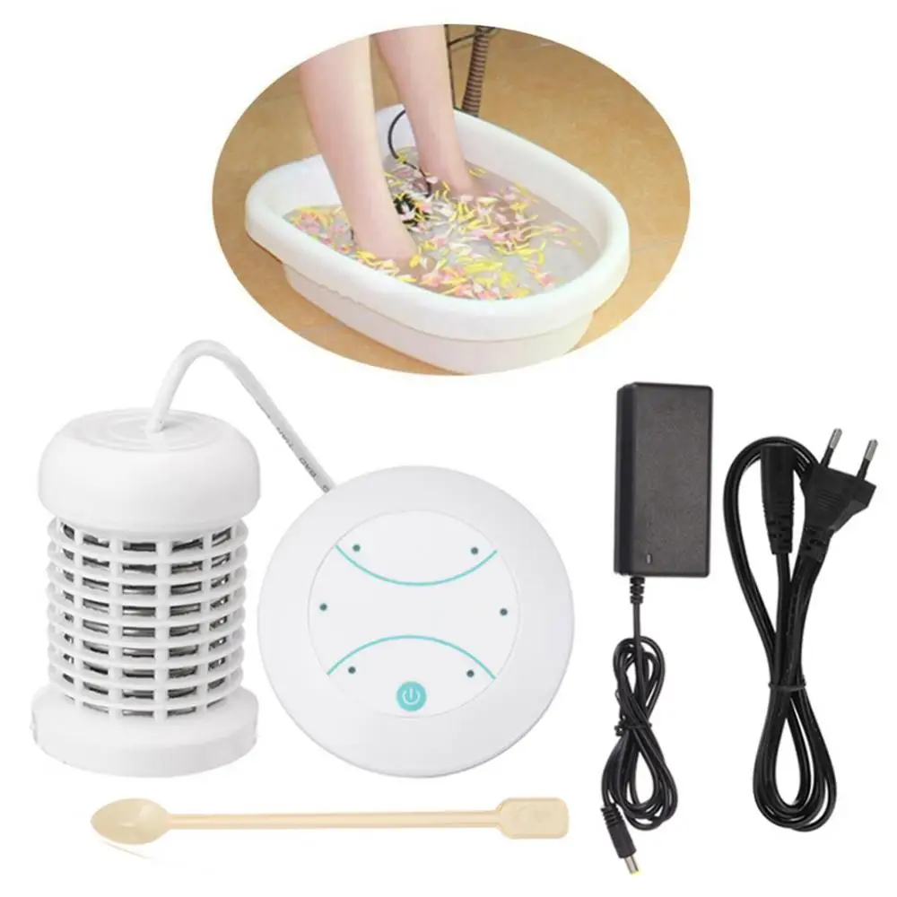 L’ensemble d’outils de bain de pieds est conçu pour le bain de pieds à la maison afin de soulager efficacement la douleur et procurer une détente profonde. Fabriqué en plastique et en métal de haute qualité, il est durable et peut être utilisé sur le long terme. L’utilisation de cet ensemble est très simple, il suffit de l’insérer dans l’eau. Disponible avec différentes prises, il s’adapte aux normes électriques de différents pays. Sa tension d’entrée est de 100-240V avec une tension de sortie de DC 12V et une puissance de 24W. Cet ensemble d’outils de bain de pieds est facile à utiliser, pratique, durable et portable. Sa longueur de câble est de 1.5m. Veuillez noter que la baignoire n’est pas incluse dans cet ensemble.