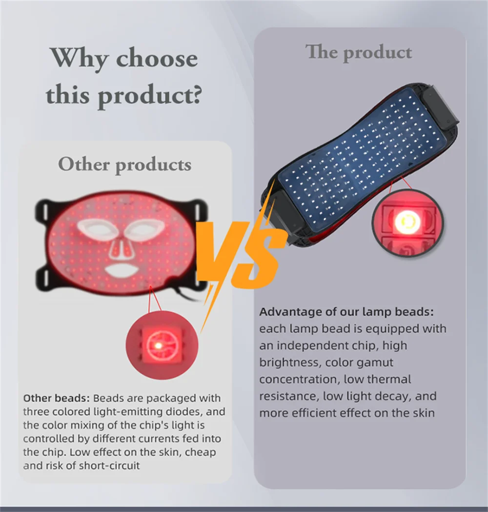 Avec la fonction de réparation, cette combinaison de lumières peut rapidement retrouver un état sain et stable de la peau et des lésions cutanées. Elle peut également être utilisée sur d’autres parties du corps pour la réparation, offrant une expérience confortable et apaisante, aidant à soulager la fatigue, la tension musculaire et les douleurs.
