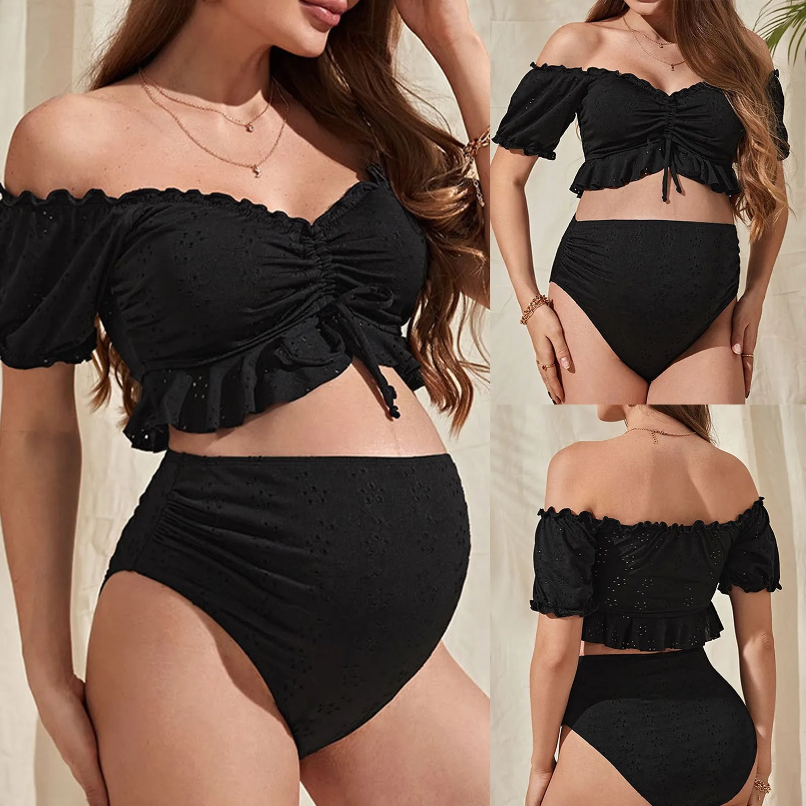Maternité cravate avant maillot de bain noir deux pièces maillot de bain plage maillot de bain été vêtements de maternité