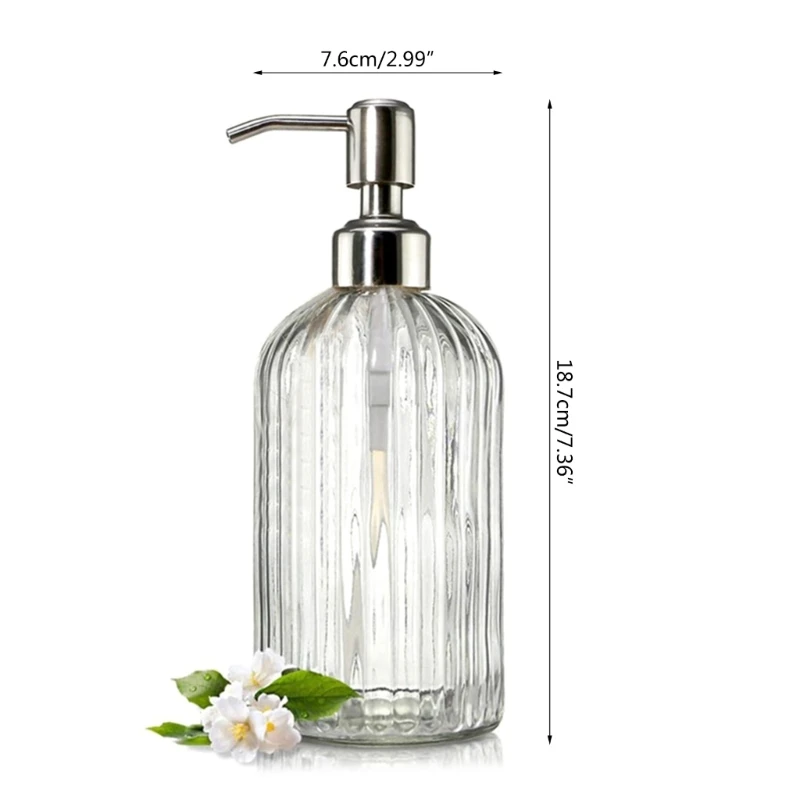 - Distributeur de savon rechargeable en verre transparent avec pompe en acier inoxydable