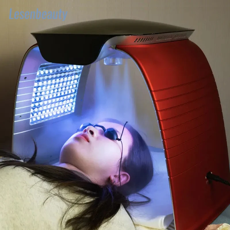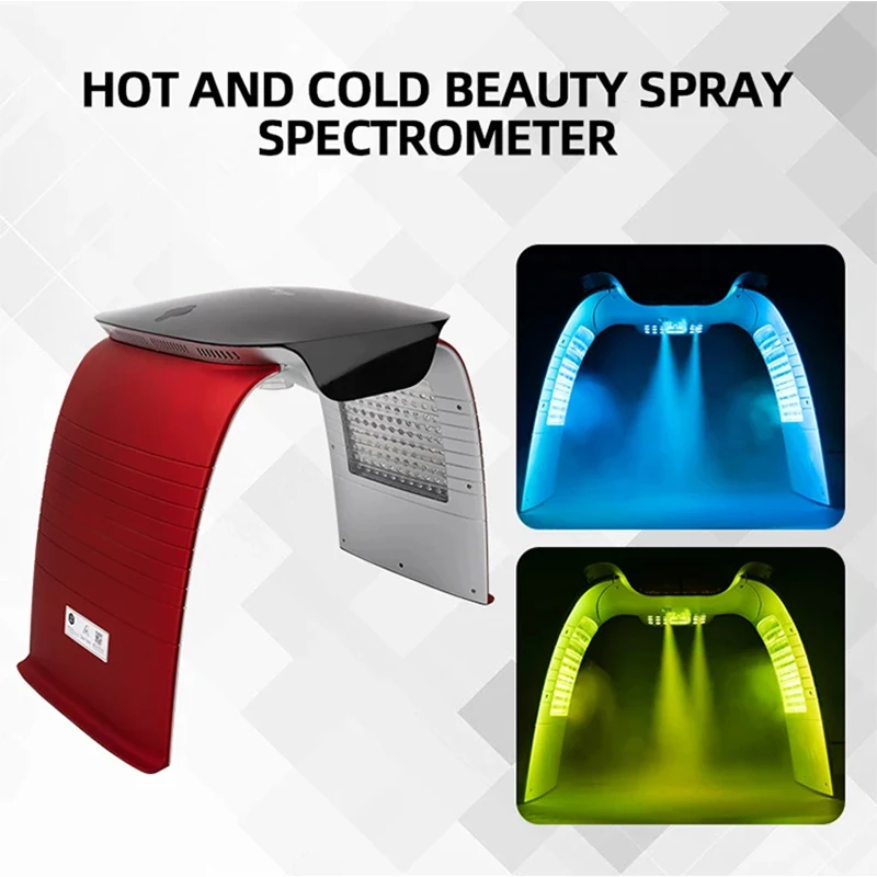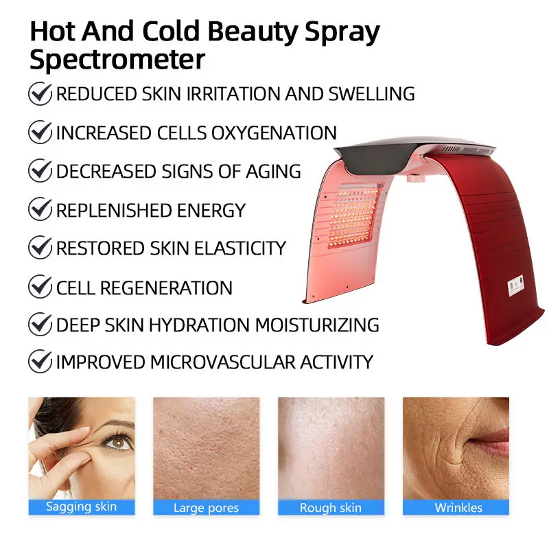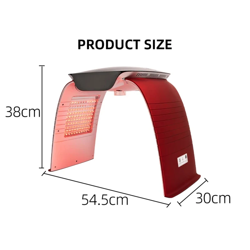 Le masque facial à LED 7 en 1 est un équipement de beauté polyvalent pour le visage et le corps. Fabriqué en ABS, il est robuste et durable. Avec une puissance de 50W et un courant de 2.5A, il utilise 268 perles LED pour fournir différents traitements à la peau. Le masque est de couleur rouge et pèse 3505g. Ses dimensions sont de 54*38*26.5cm.