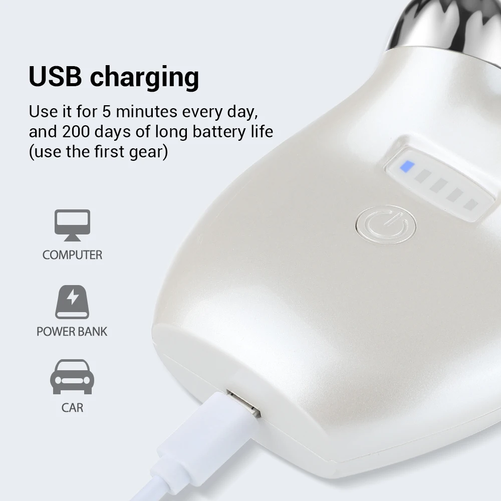 En utilisant cet appareil avec votre crème, votre essence ou votre masque facial préférés, vous doublez l’absorption des nutriments et améliorez l’effet de vos soins de la peau. Vous pouvez l’utiliser pour masser votre visage et vos yeux, soulager la fatigue oculaire, réduire les ridules et les cernes, éliminer l’œdème, favoriser le métabolisme de votre peau et la rendre plus élastique et plus lisse.
