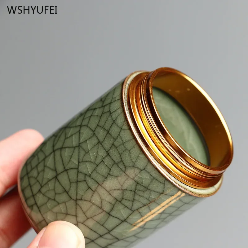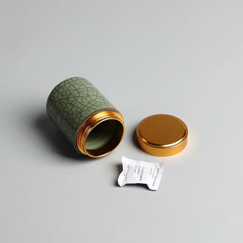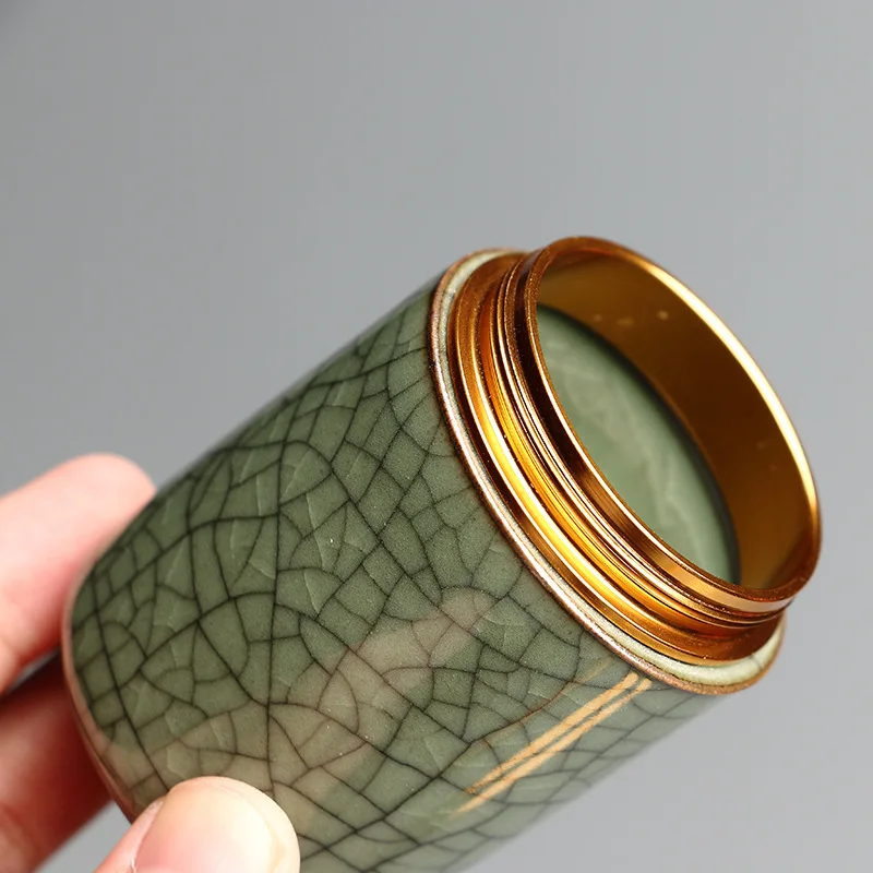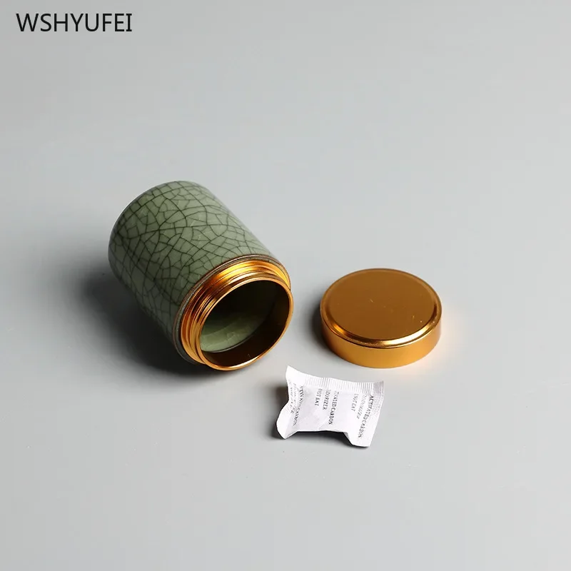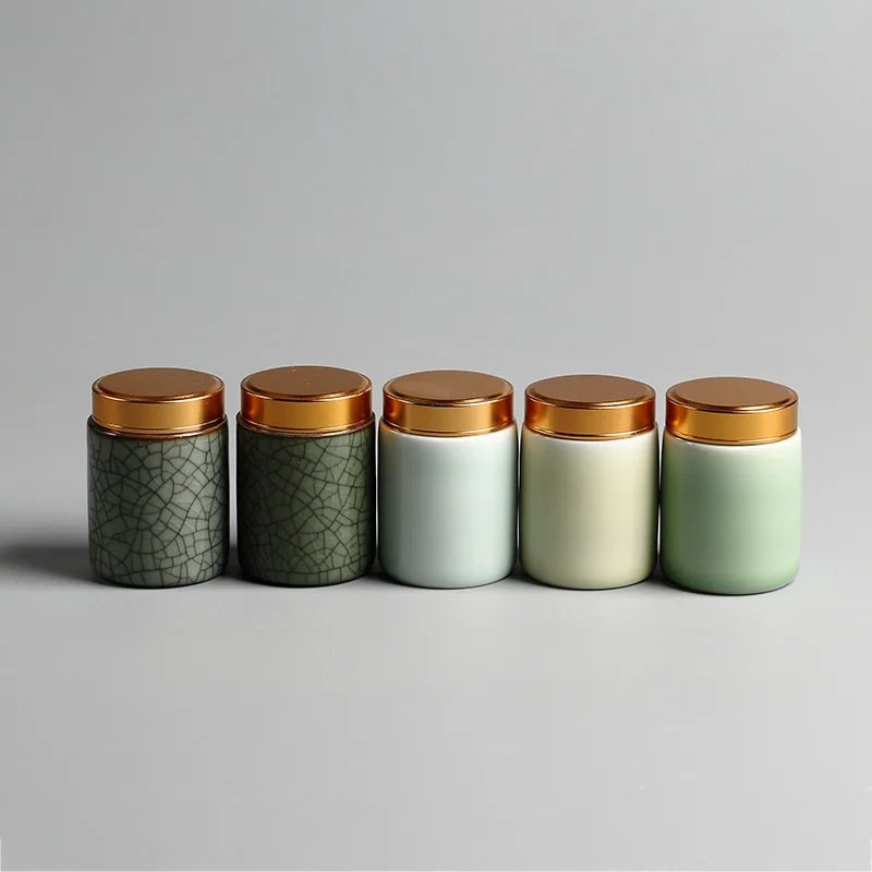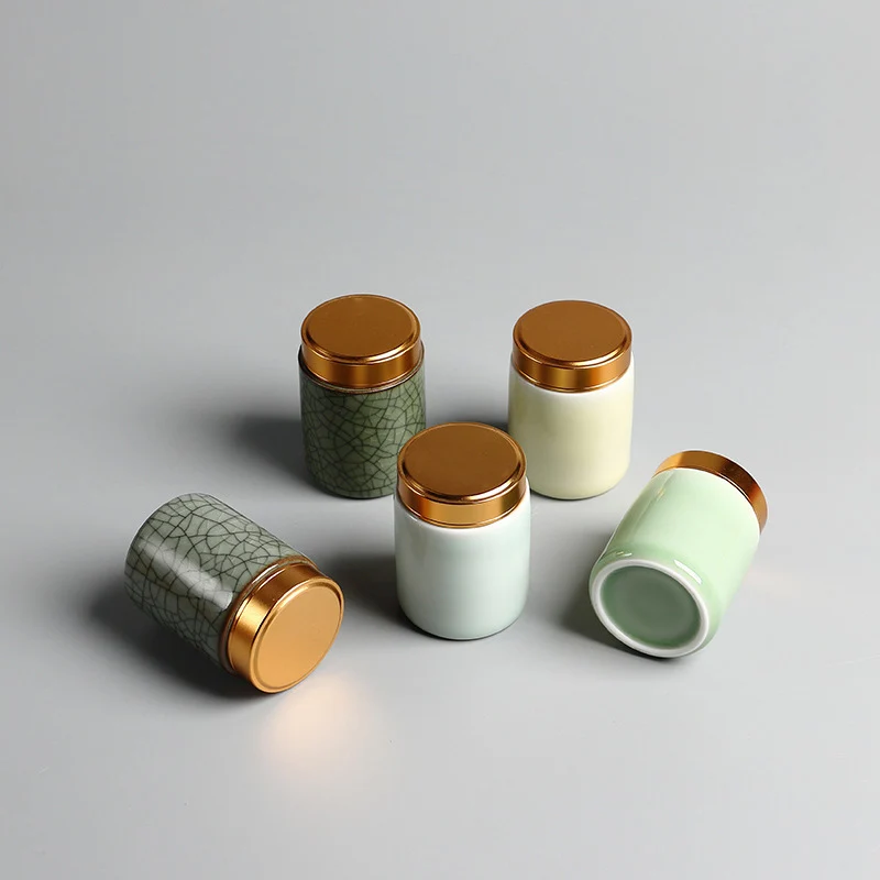 - Mini boîte à thé en métal céladon avec bouchon à vis, petite boîte à thé, boîte à thé en céramique, réservoir de stockage de rouge à lèvres, voyage pratique, hôtel, petit pot