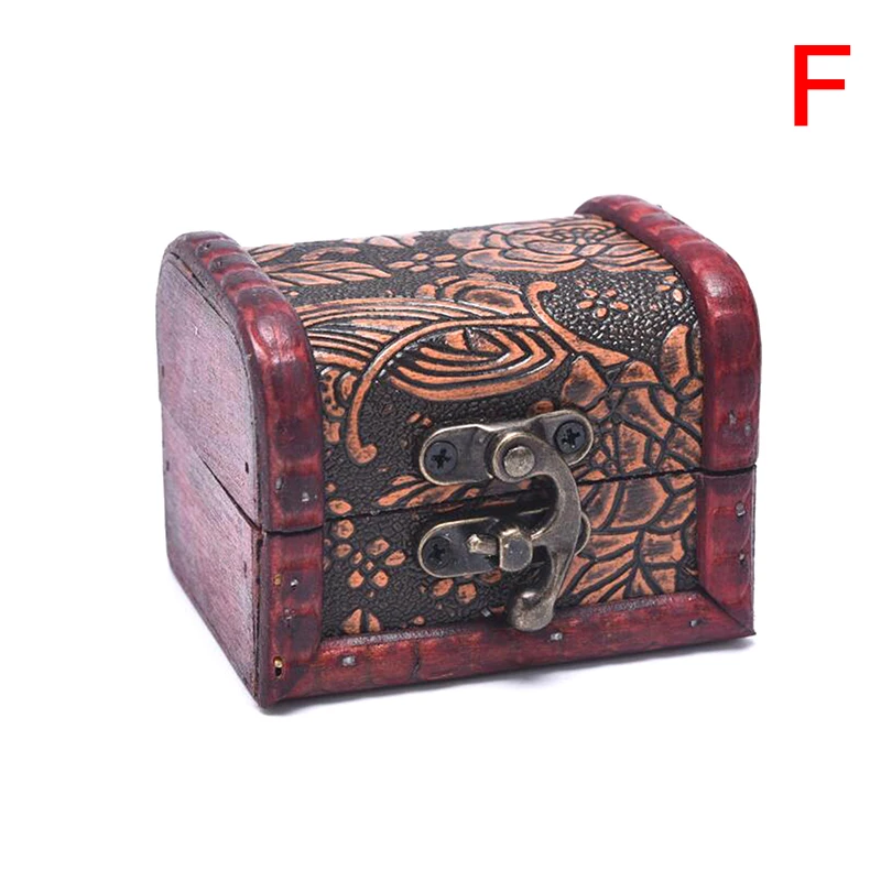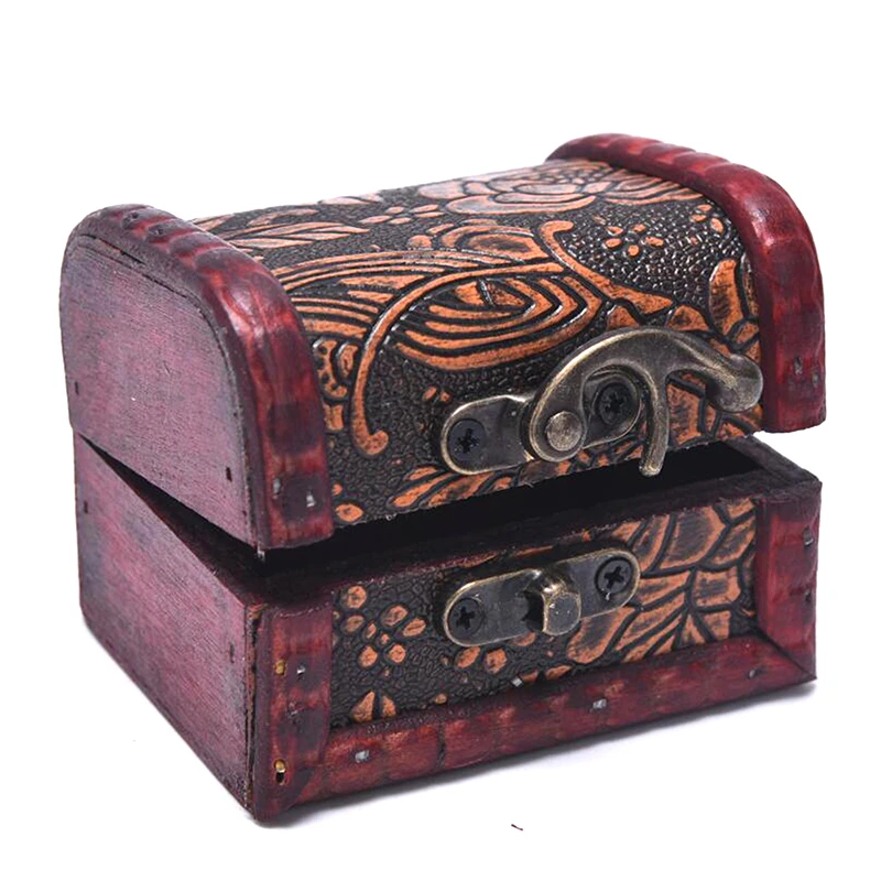 Mini coffre de rangement en bois antique portable