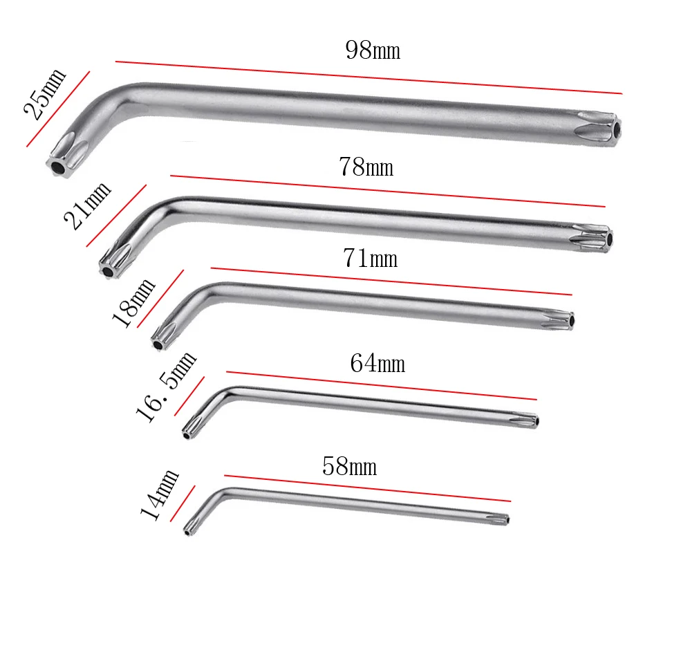 | Spécifications | Couleur: argent. Matériau: acier allié. Type de tête: T10, T15, T20, T25, T30. Quantité: 2 pièces/ensemble. |
