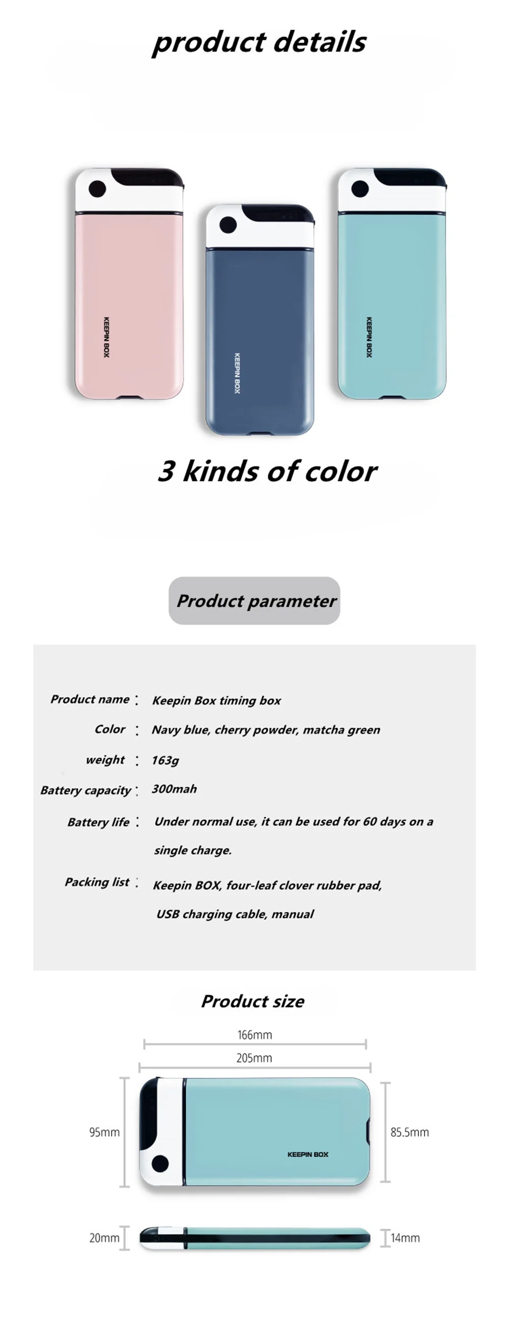 • Autonomie de la batterie: sous l’utilisateur normal, il peut être utilisé pendant 60 jours sur une seule charge