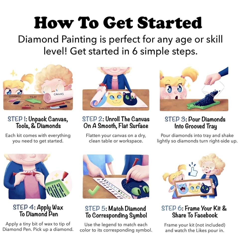 La peinture au diamant est proposée en forets ronds ou carrés, vous permettant de choisir selon vos préférences. De plus, le kit est équipé de tous les outils nécessaires pour réaliser votre œuvre d’art.