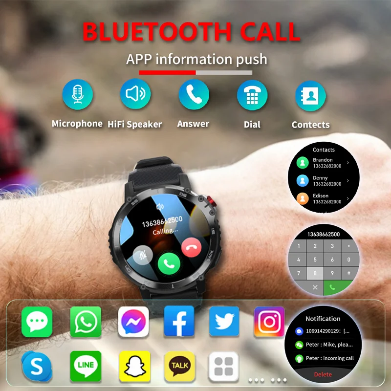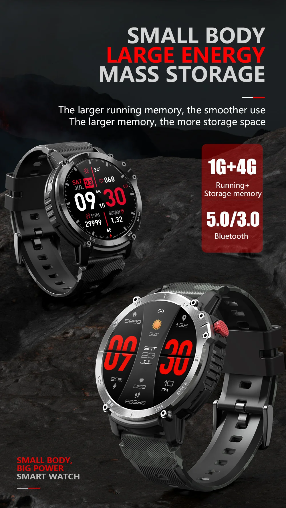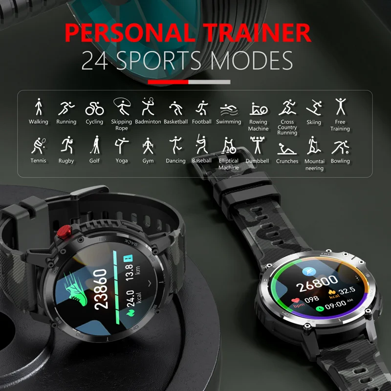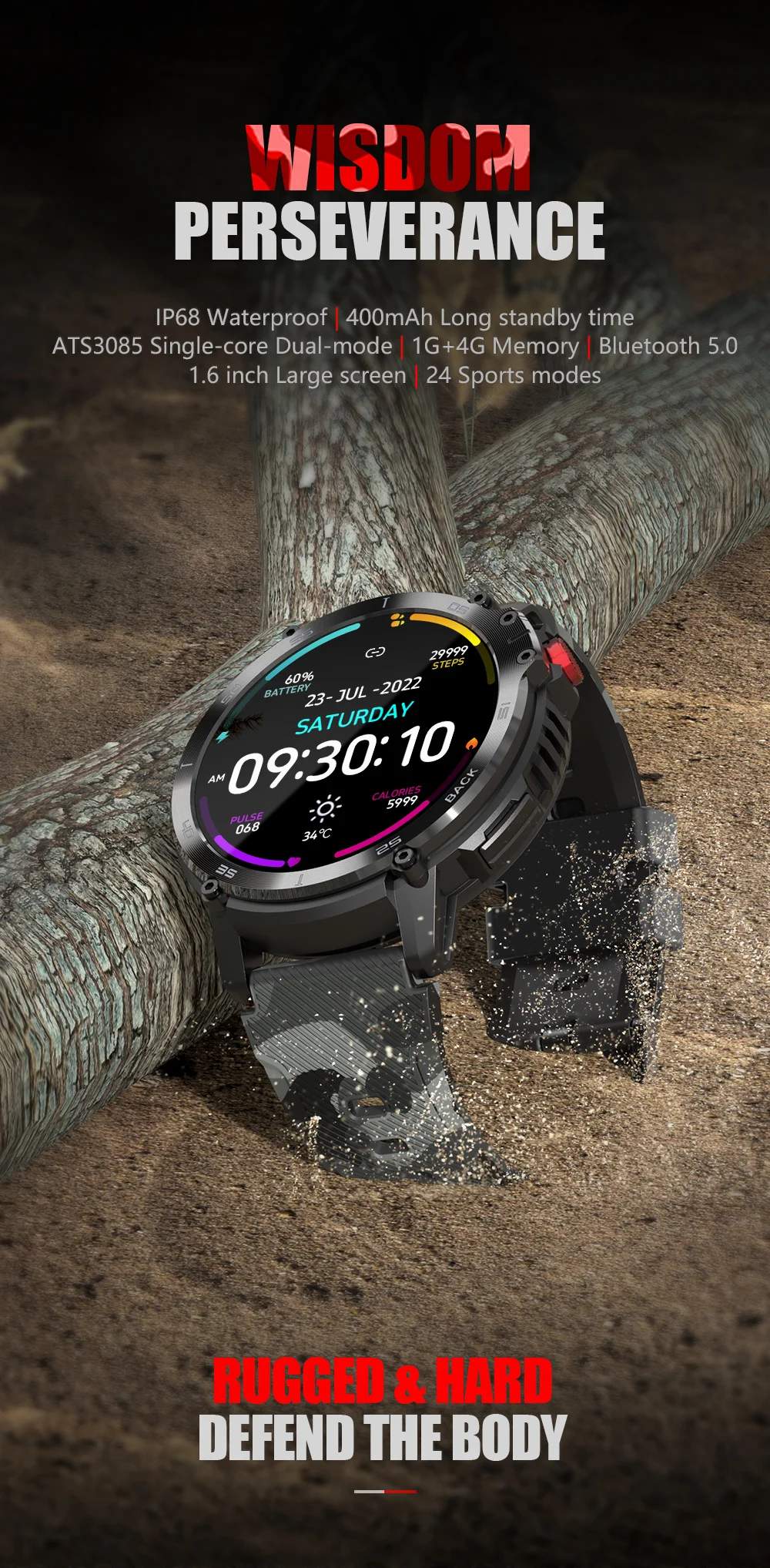 C22 montre intelligente robuste hommes 3atm étanche Sport montres 1.6 »pression artérielle Bluetooth appel militaire Smartwatch pour Android Ios