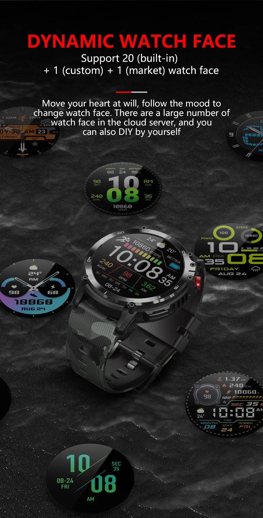 - Bluetooth répondre aux appels, faire des appels, un grand nombre de cadrans peuvent être téléchargés dans l’application, et personnaliser les fonds d’écran;