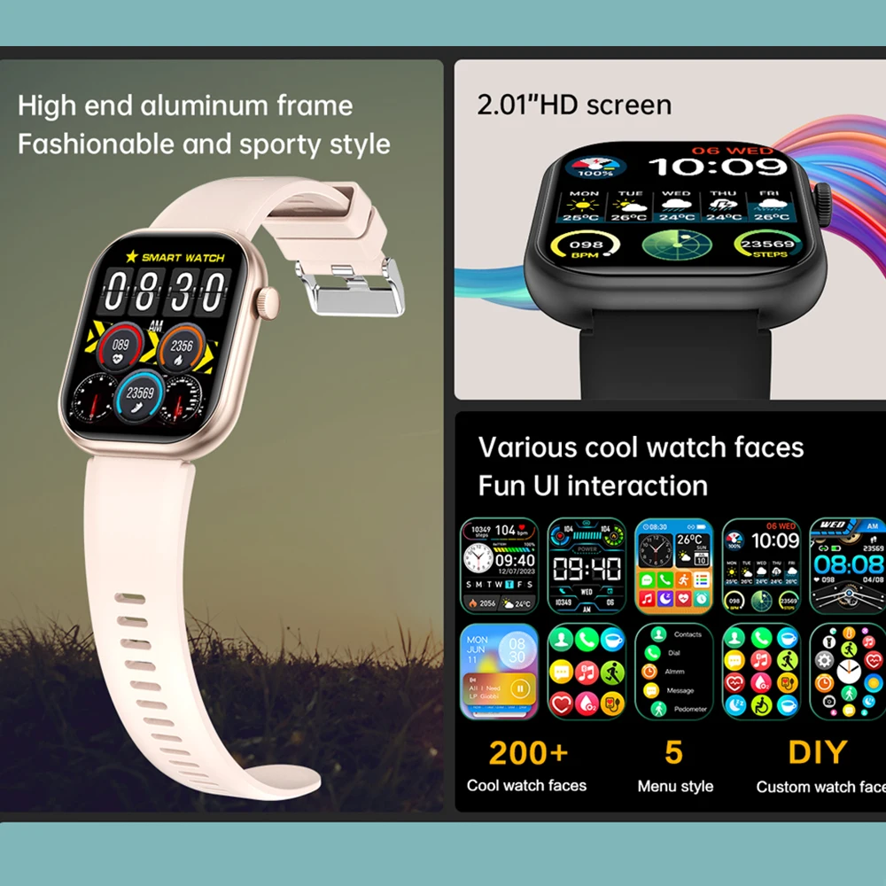 La montre connectée étanche à écran tactile complet pour hommes et femmes présente un design moderne et élégant. Son écran TFT haute définition de 2.01 pouces offre une excellente qualité d’affichage avec une résolution de 240*282 pixels.