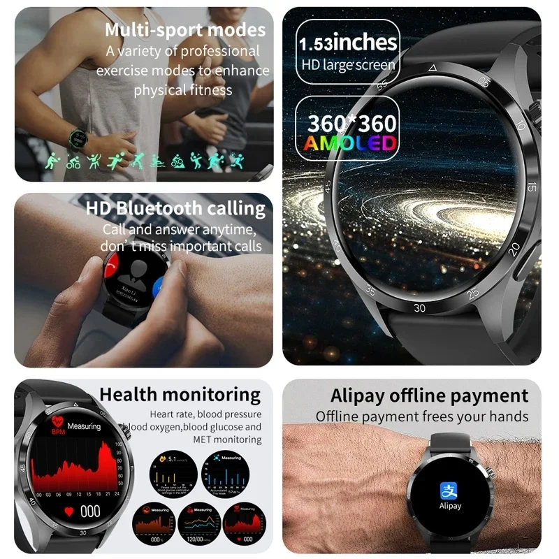 La GT4 Pro GPS Smartwatch pour homme et femme est une montre intelligente dotée de nombreuses fonctionnalités avancées. Cette montre est équipée d’un écran AMOLED HD de 1,6 pouces avec une résolution de 454*454, offrant ainsi une qualité d’image claire et nette. La capacité de la batterie est de 360mAh, ce qui permet une autonomie de 30 jours en veille et de 3 à 5 jours en utilisation.