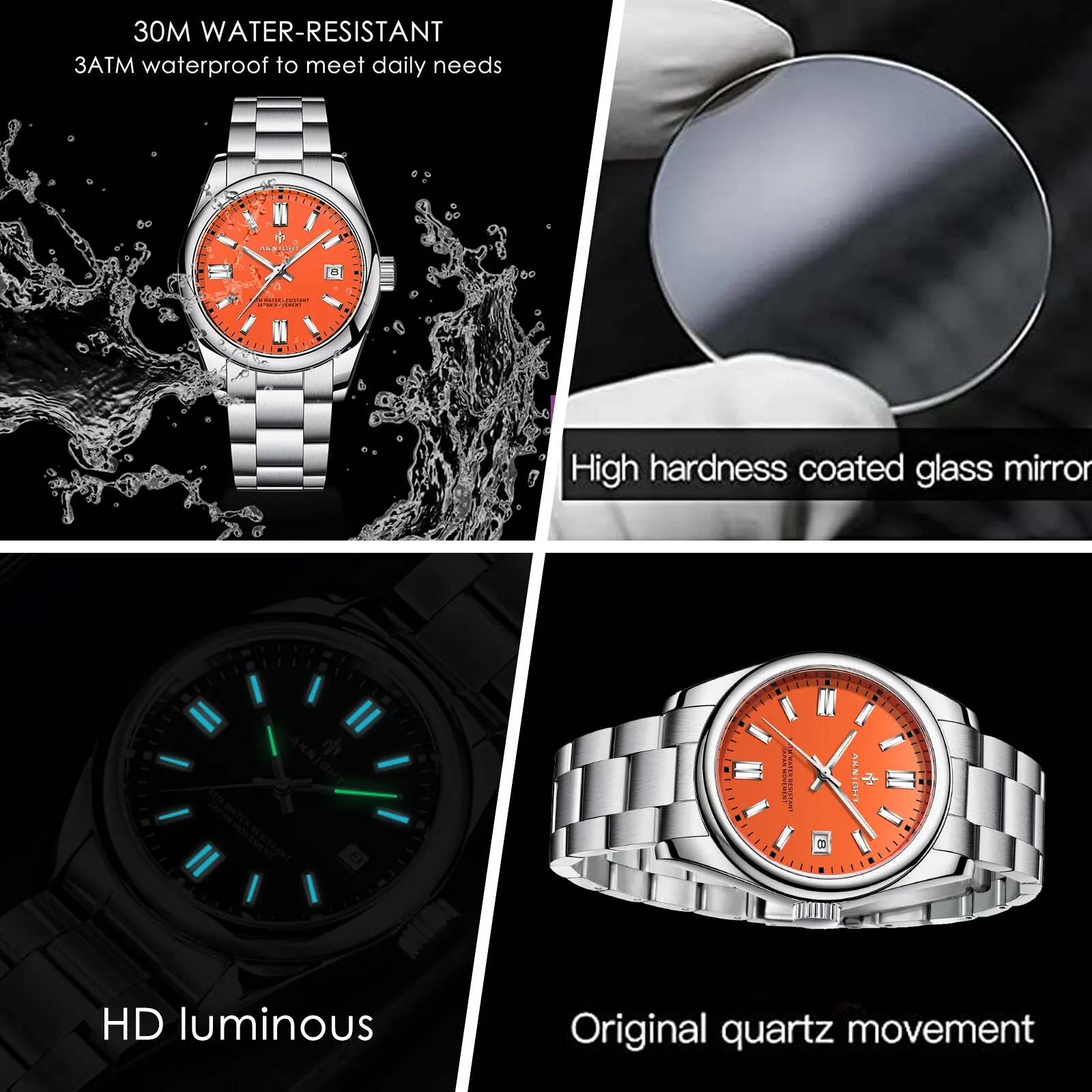 L’AKNIGHT Montre pour Hommes Analogique Quartz Montres Chronographe Étanche Bande En Acier Inoxydable est une montre de Luxe au style intemporel. Cette montre-bracelet polyvalente est adaptée à toutes les occasions et tenues.