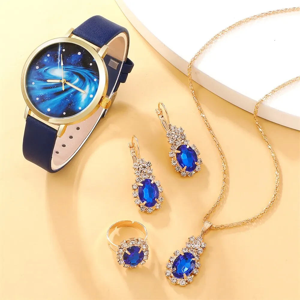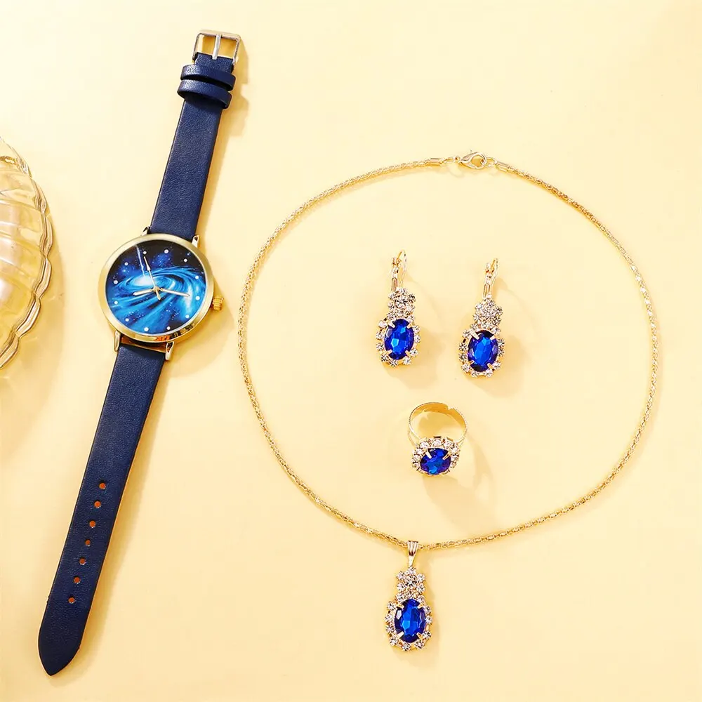 Cette montre à cadran ciel étoilé pour femme est un choix élégant et tendance pour toutes les occasions. Le cadran ciel étoilé ajoute une touche unique à cette montre, la rendant vraiment spéciale. Le bracelet en cuir bleu est non seulement confortable à porter, mais il apporte également une touche de couleur à votre tenue. Le mouvement à quartz assure une précision de chronométrage, vous permettant de toujours être à l’heure. L’ensemble de 5 pièces est un avantage supplémentaire, vous offrant la possibilité de changer de bijoux en fonction de votre style et de vos envies. En résumé, cette montre est à la fois élégante, décontractée et polyvalente, ce qui en fait un excellent choix pour les femmes modernes.