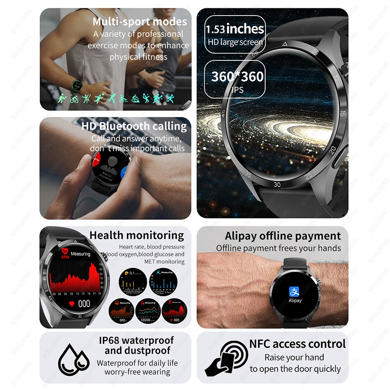 Cher ami, merci beaucoup pour votre soutien, il s’agit d’une montre intelligente GPS multifonctionnelle! Le produit a de nombreuses fonctions très utiles! Par exemple, la fonction NFC, vous pouvez ouvrir la porte à travers la montre! Fonction d’appel Bluetooth, après avoir connecté le Bluetooth du téléphone portable, vous pouvez passer des appels directement! Fonction d’assistant vocal AI, ouvrez la fonction de la montre par la voix! Il y a aussi des fonctions médicales pour surveiller la fréquence cardiaque, la glycémie, la pression artérielle et garder un œil sur votre santé! Toutes sont des fonctions très utiles!