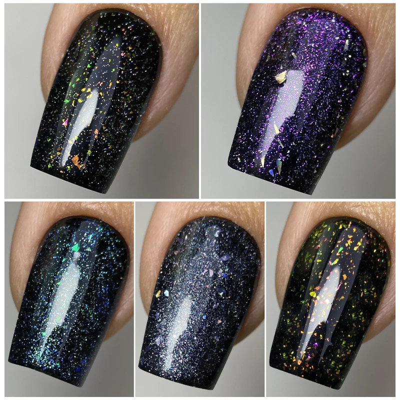 2. Plusieurs paillettes colorées, affichage de différentes couleurs sous différentes lumières
