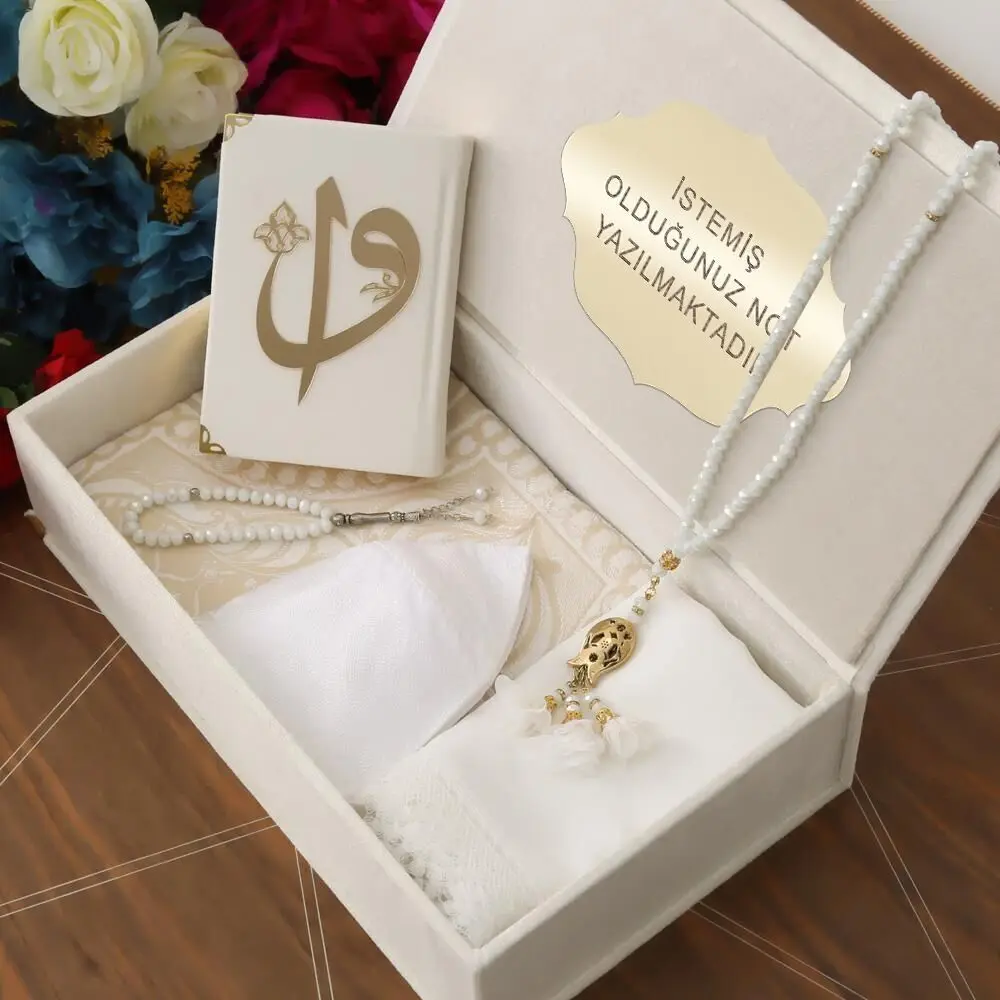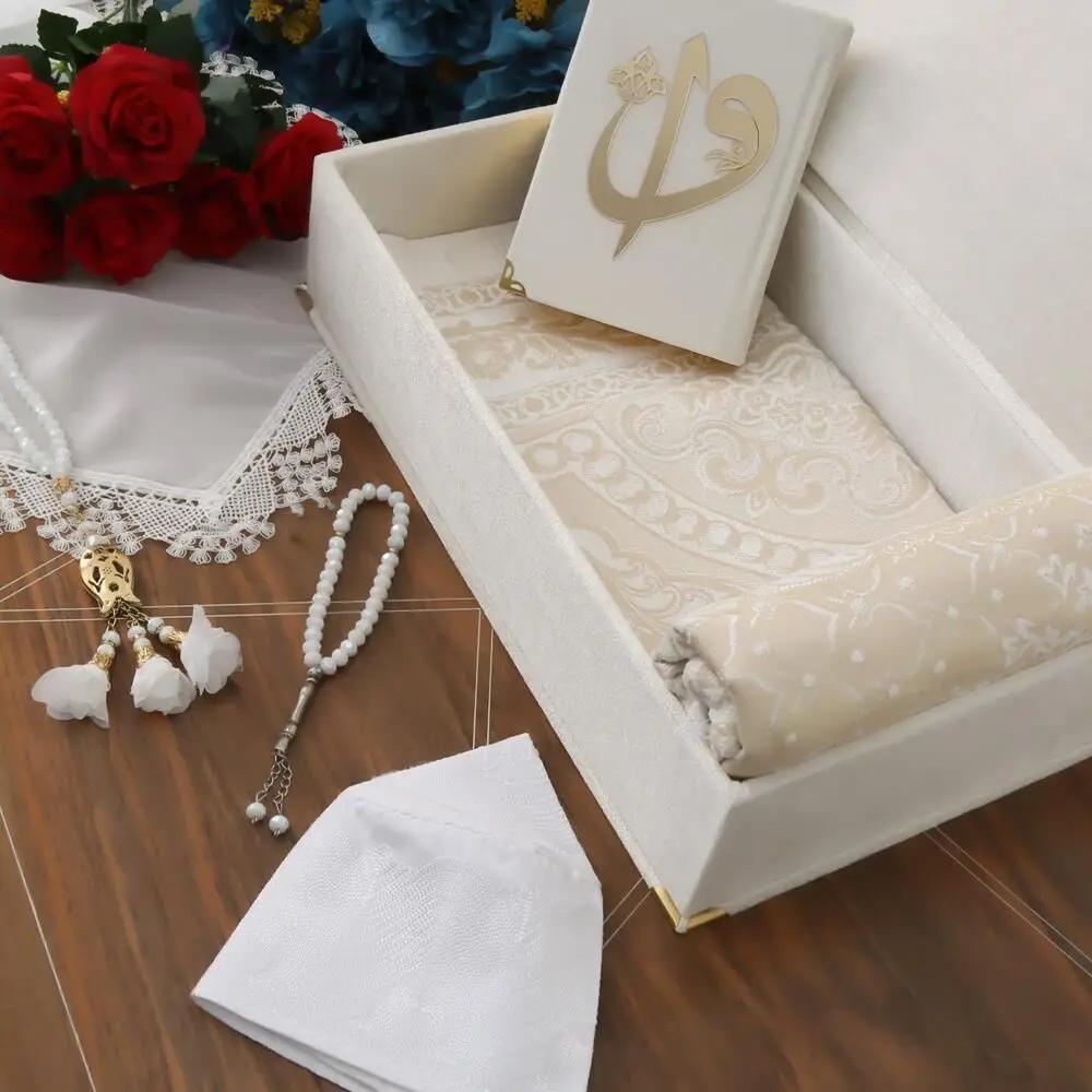 Le tapis de prière est de qualité supérieure, avec des dimensions parfaites pour prier confortablement. Le châle de luxe est élégant et offre une excellente couverture lors des périodes de prière. La casquette de prière Mevlidhan est un ajout unique à ce pack.