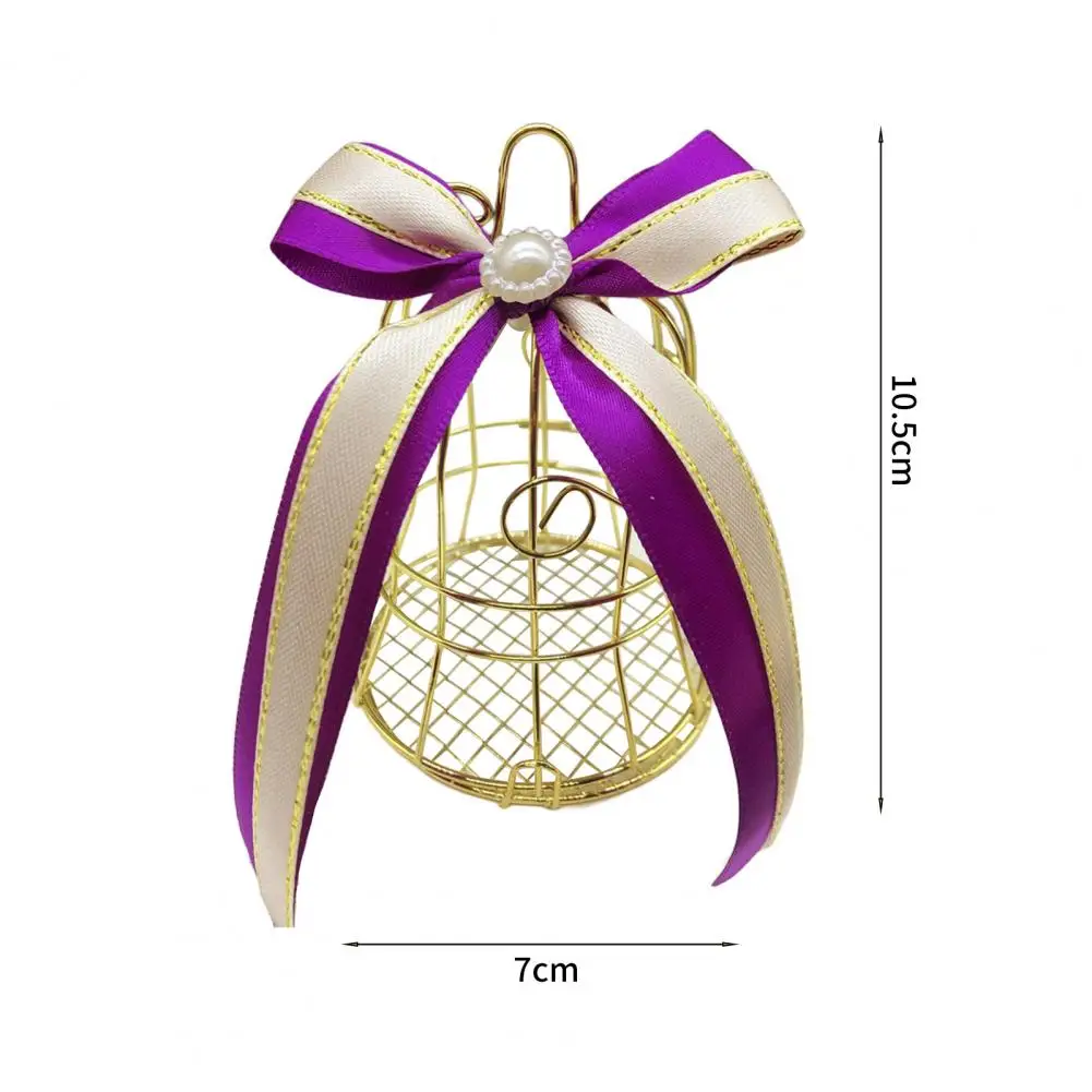Avec une structure solide, cette boîte à bonbons est résistante aux chutes et ne s’écrase pas facilement, ce qui en fait l’offre parfaite pour les cadeaux. Donnant une ambiance festive et délicate, cette boîte à bonbons a une nouvelle forme de cage à oiseaux, ruban d’arc et garniture de lys. Cette boîte de sucrerie est construite avec du matériel d’art de fer. La hauteur est de 10.5cm et le diamètre est de 7cm. Cette boîte à bonbons convient aux mariages, aux fêtes et aux fiançailles.