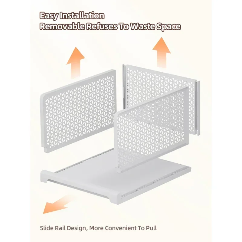 L’étagère de rangement de placard de type coulissant est spécialement conçue pour organiser votre garde-robe. Grâce à sa conception coulissante, vous pouvez facilement accéder à vos vêtements et les ranger de manière ordonnée.