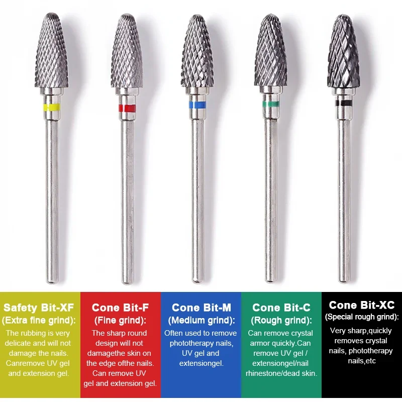 Forets à ongles carbure d’acier au tungstène grand cône fraise électrique pour dissolvant de vernis à Gel outils de meulage accessoires de bricolage