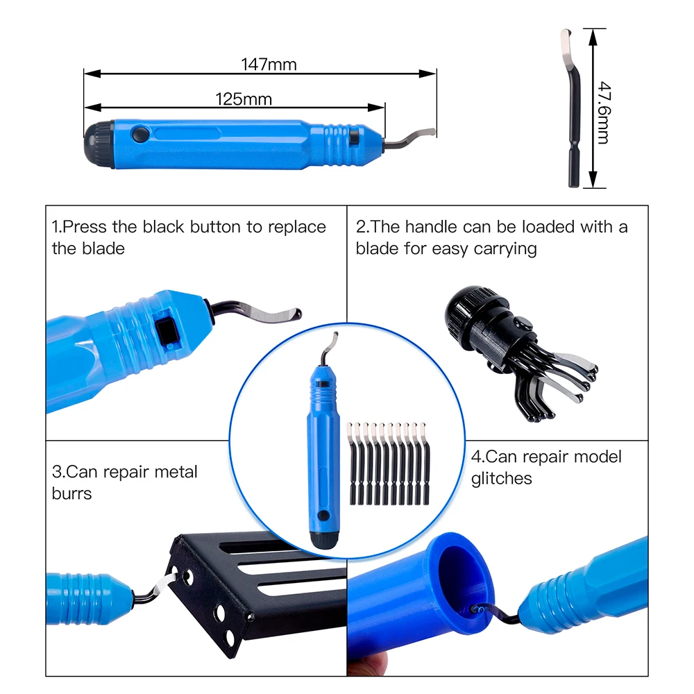 - Comprend un couteau de coupe de bord, des limes d’ébavurage, des pièces d’imprimante 3D pour tube de cuivre, un grattoir et un coupe-câble métallique