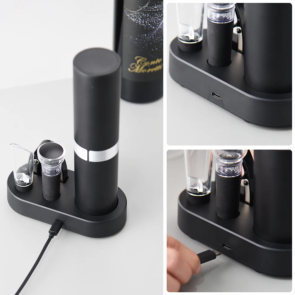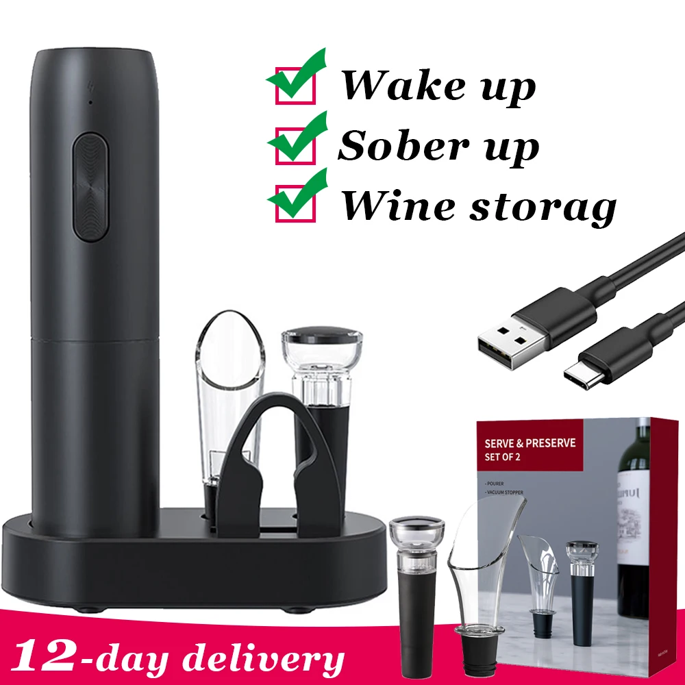 • Ensemble cadeau de tire-bouchon électrique intégré: ensemble cadeau de tire-bouchon multifonctionnel avec coupe-feuille, bouchon de vin, barboteur et tire-bouchon, offrant une solution unique pour ouvrir, verser et conserver le vin.
