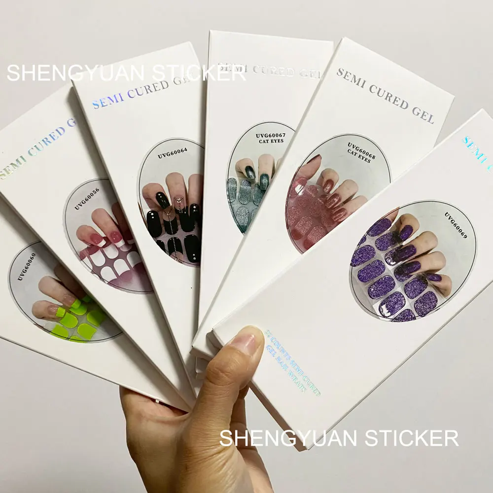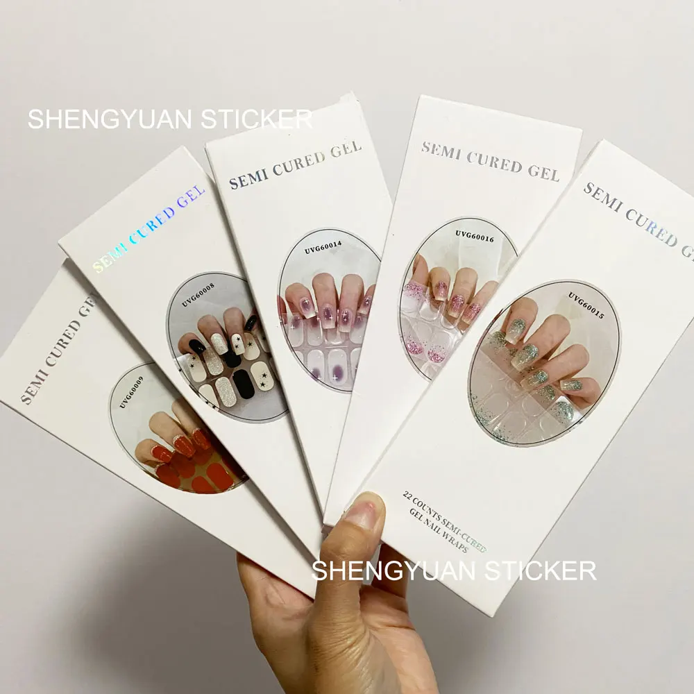 - Autocollants d’enveloppements d’ongles en gel semi-durci