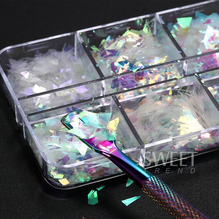 • Articles: Flocons irréguliers de scintillement d’ongle d’iridescent AB