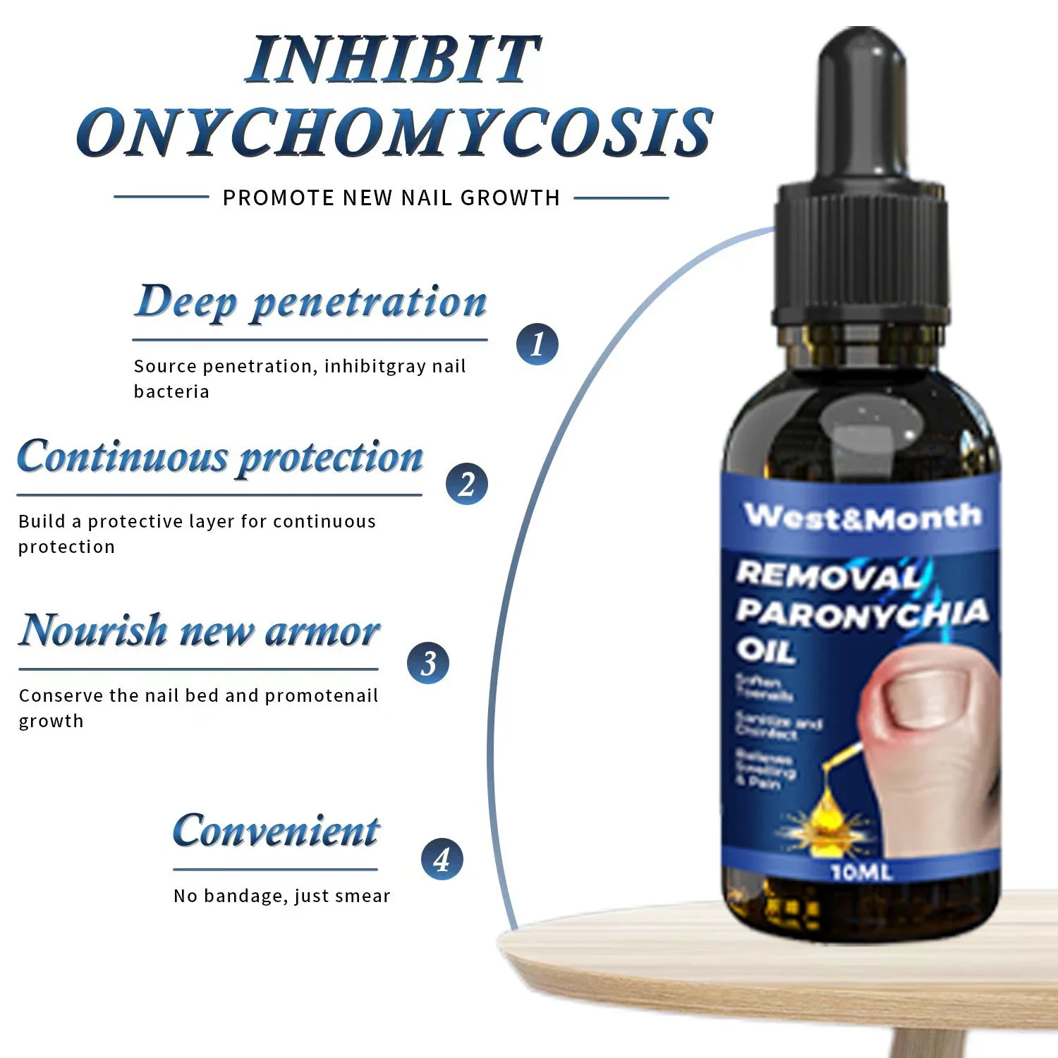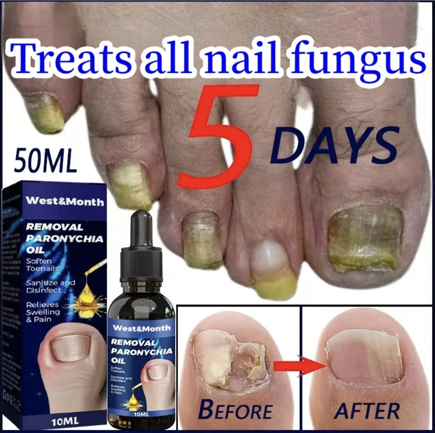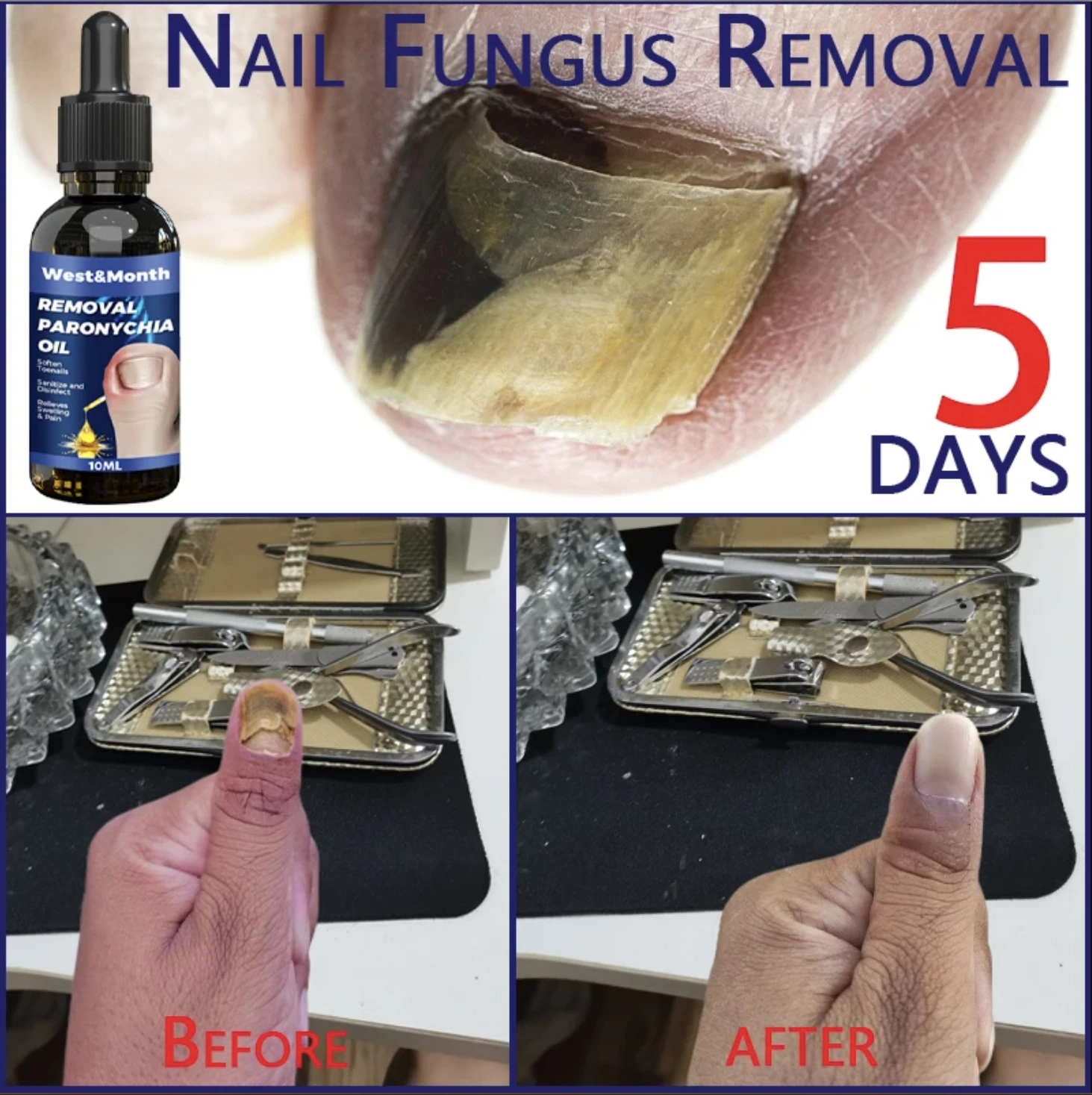 Utilisez de l’huile de soulagement des plis des ongles West & month pour réparer les ongles incarnés, les ongles, les ongles des orteils, les plis et l’huile de soin des ongles doux: comparaison post-utilisation