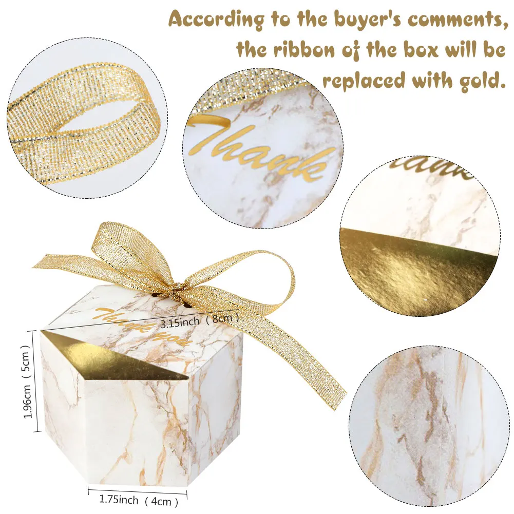 - Comprend des boîtes à bonbons en marbre et des rubans dorés