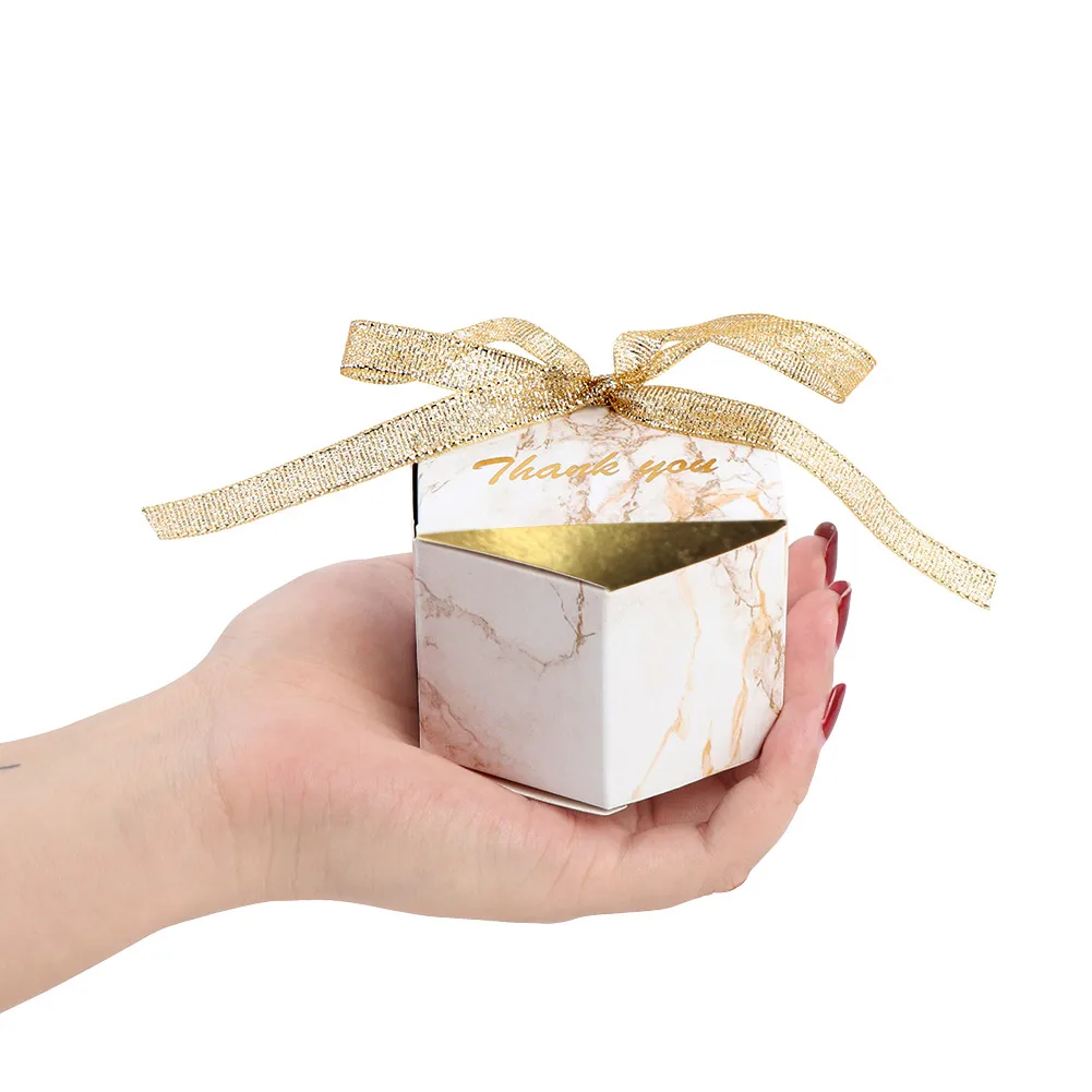 Voici les points importants à retenir du produit PARTYWORLD-Boîtes à Bonbons en Marbre localité, Sacs Hexagonaux pour Chocolat, Cadeaux avec Rubans :