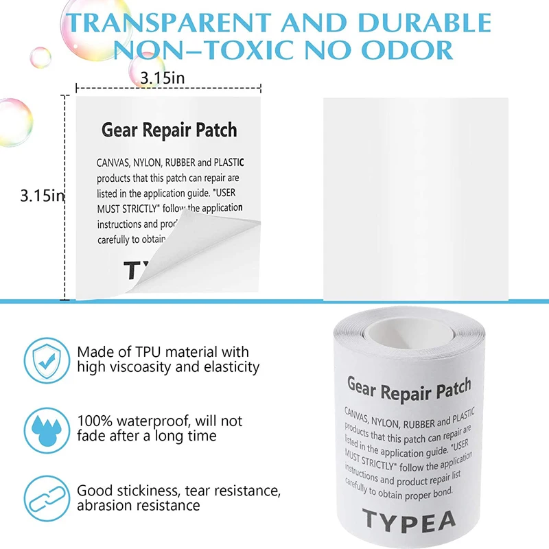 Le ruban patch imperméable en TPU avec un bon adhésif est idéal pour réparer les perforations, les trous et les fissures dans les produits gonflables. Le ruban de réparation est pratique et a une longueur suffisante pour être utilisé à volonté. C’est un bel outil qui vous aide à réparer les choses et à économiser votre temps.