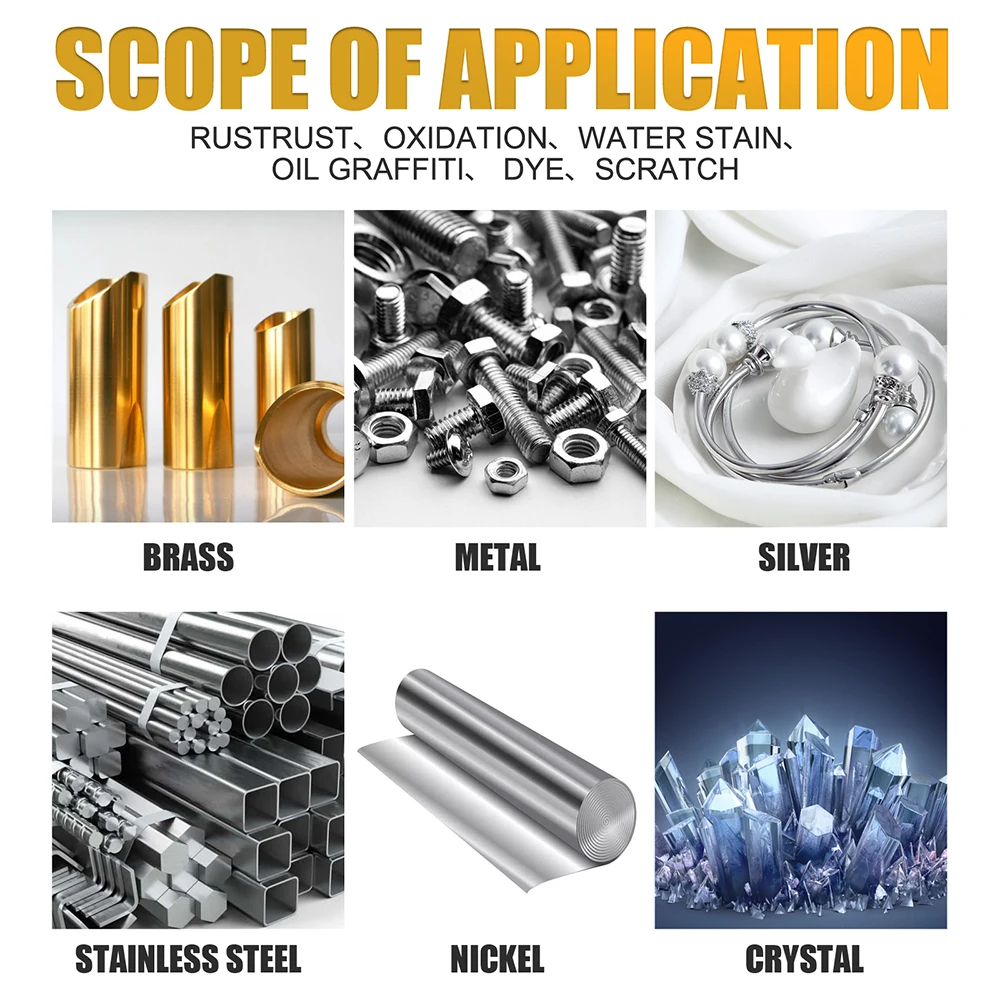La pâte de polissage en métal et acier inoxydable est la plus efficace sur le marché. Sa formule non abrasive offre une brillance riche et éclatante sur toutes les surfaces métalliques, qu’il s’agisse de cuivre, de laiton, d’or, d’argent, d’aluminium, de magnésium, de chrome, d’acier inoxydable, et bien plus encore. Avec cette crème de polissage, vos objets métalliques retrouveront leur éclat en quelques secondes. Elle élimine instantanément les taches tenaces telles que le ternissement, la rouille, l’oxydation, les taches d’eau, la décoloration par la chaleur, le goudron, l’huile, les empreintes digitales, les graffitis, les colorants, etc. De plus, cette crème de polissage est également très douce pour les antiquités et les accessoires délicats. Elle offre une couche de protection invisible qui empêche le métal de ternir à nouveau, assurant un effet brillant durable pour vos précieuses collections et outils.